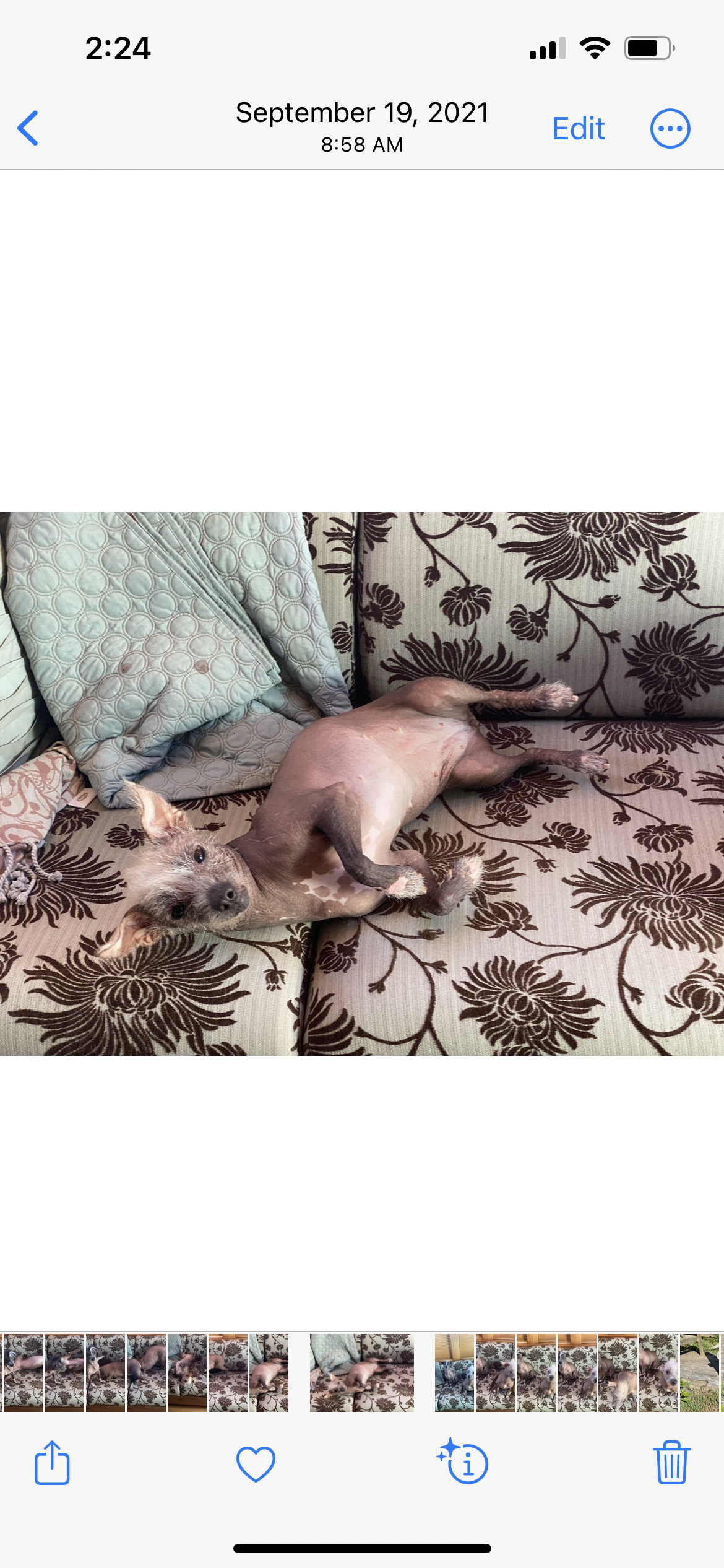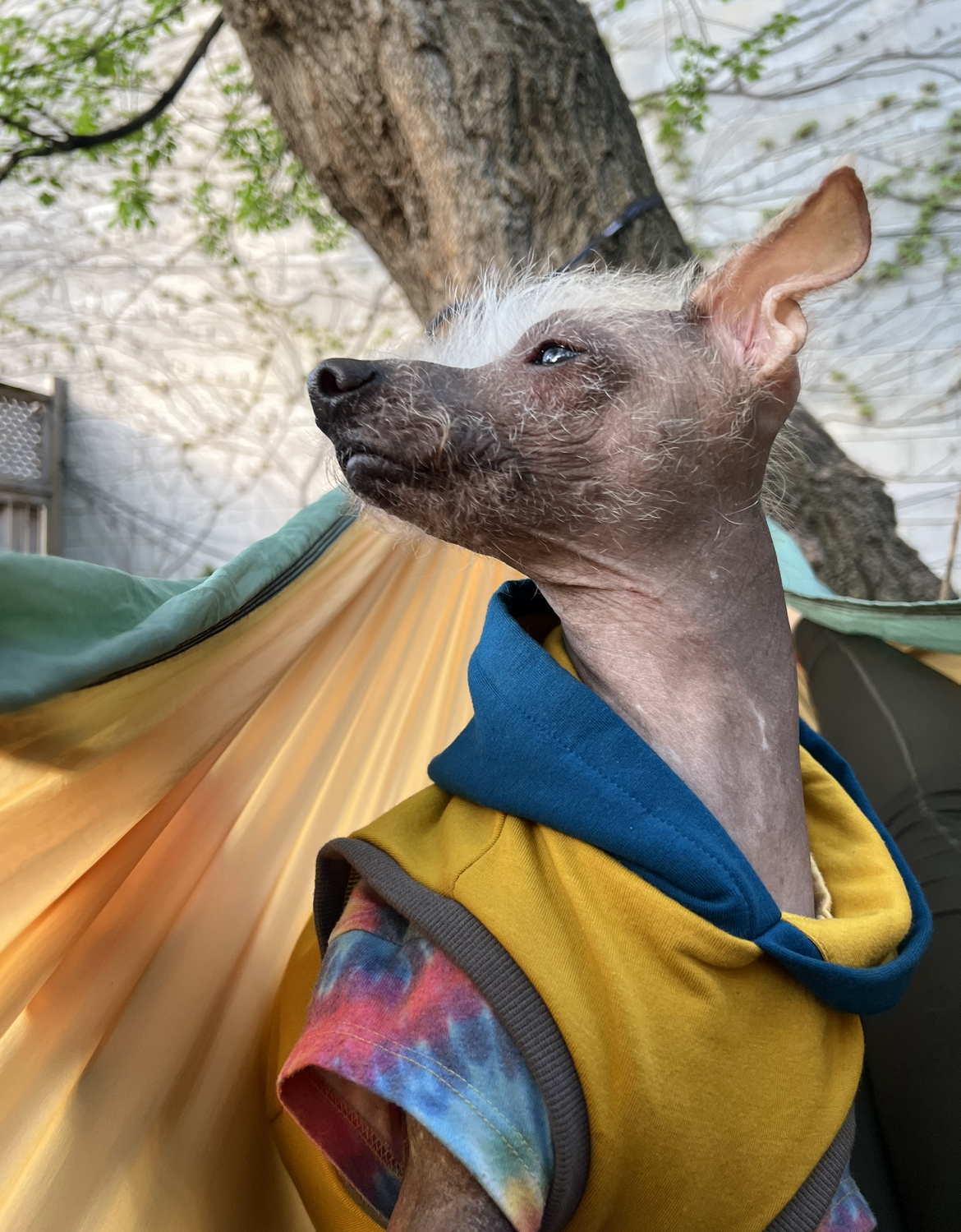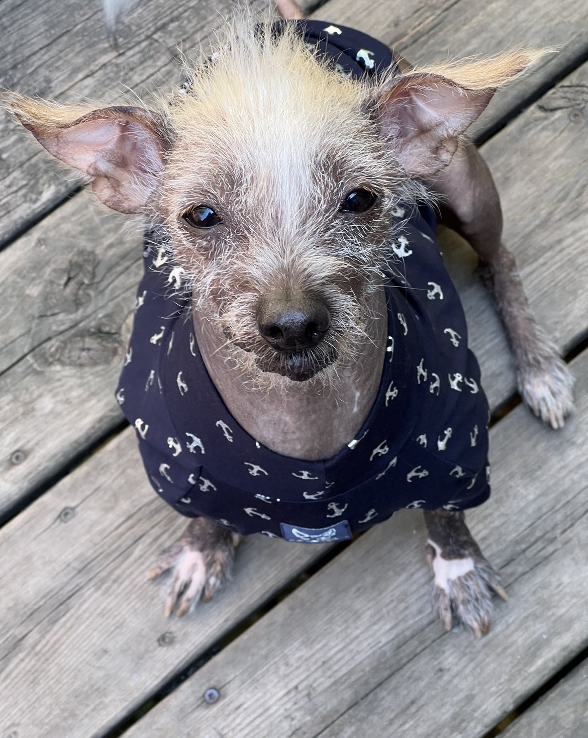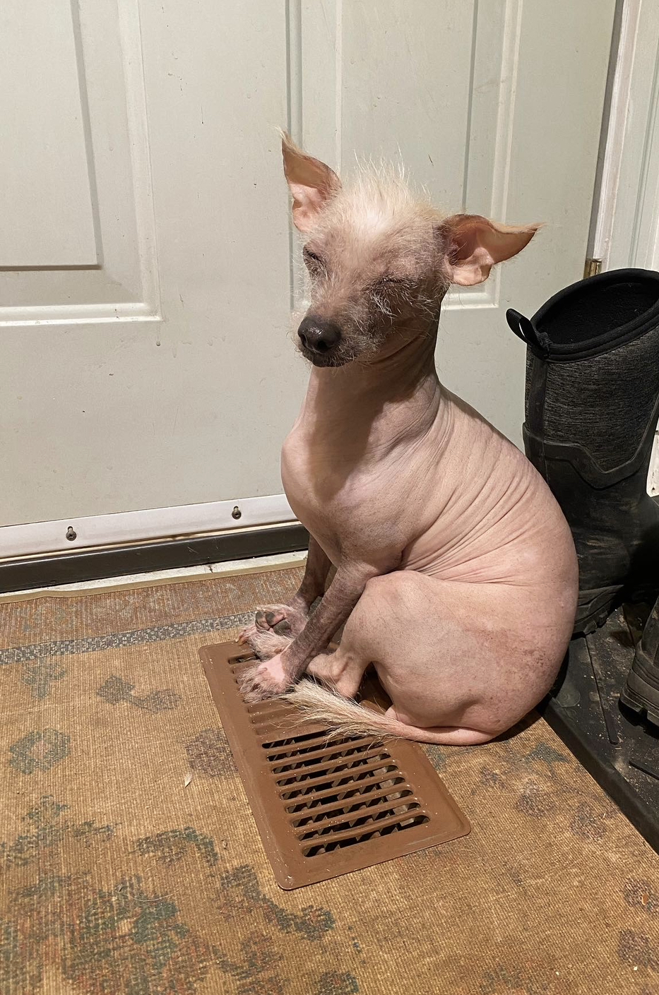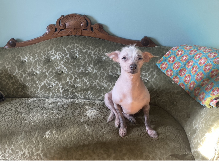 Since she’s hairless she has the added bonus of no shedding!