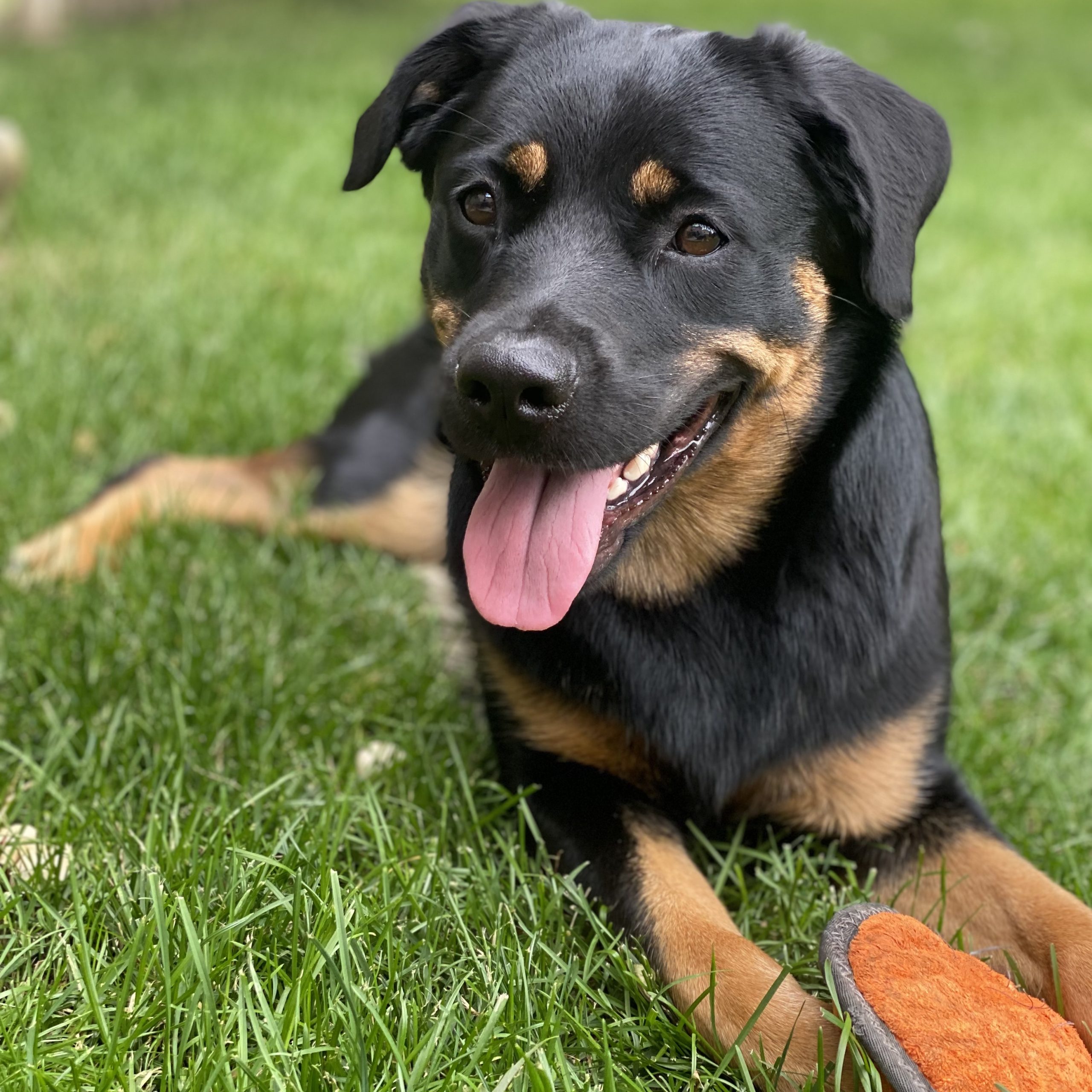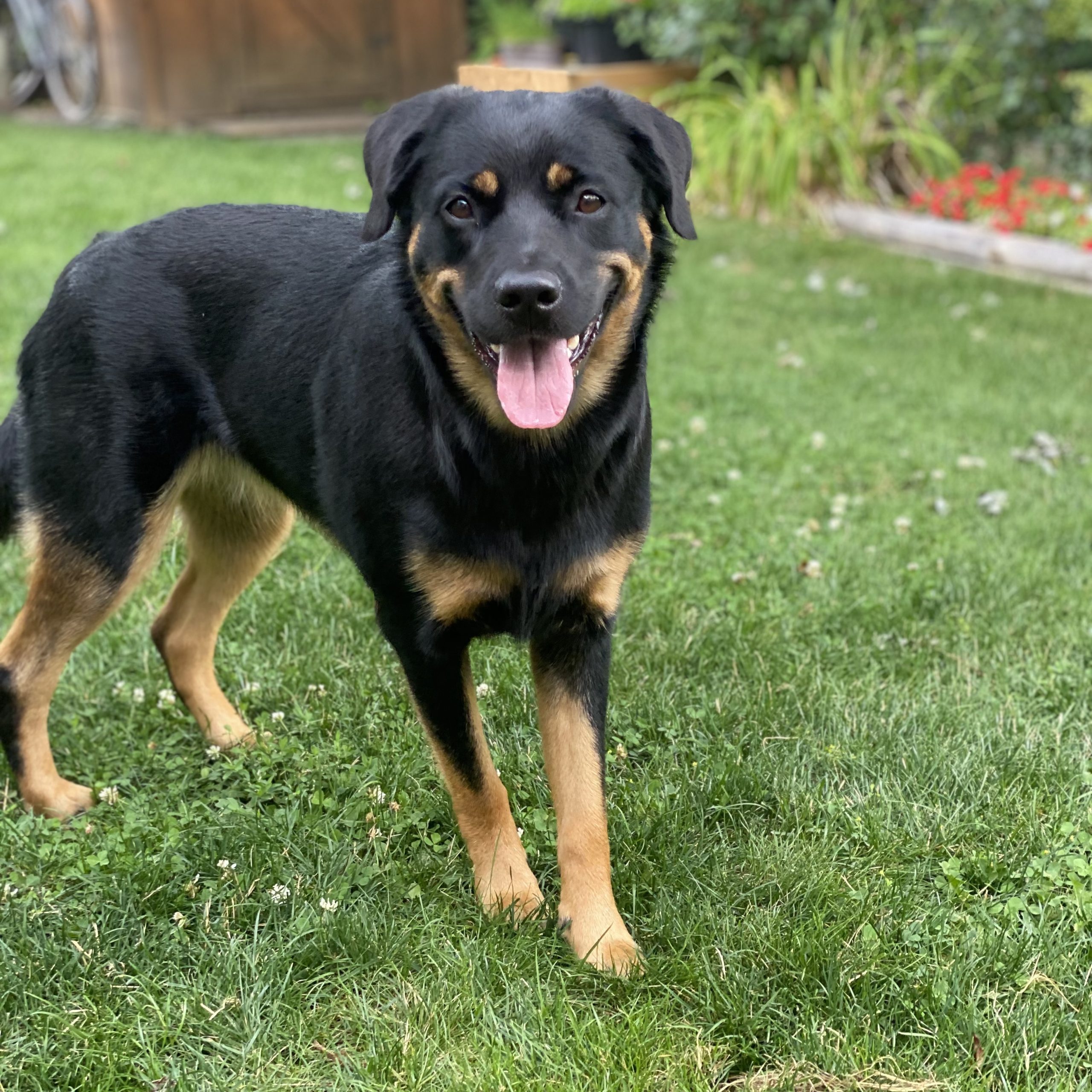Penny is the most affectionate dog. She always knows what her humans are feeling and can put a smile on anyone’s face, and she does! She is a lover of all animals including horses and cats. She is energetic and silly and has the funniest personality, especially when she gets the rottie rumbles when you tell her no! Penny is the most loveable dog. She truly is the best of both a Rottweiler and a Border Collie. She is both lazy and playful and smart but stubborn.