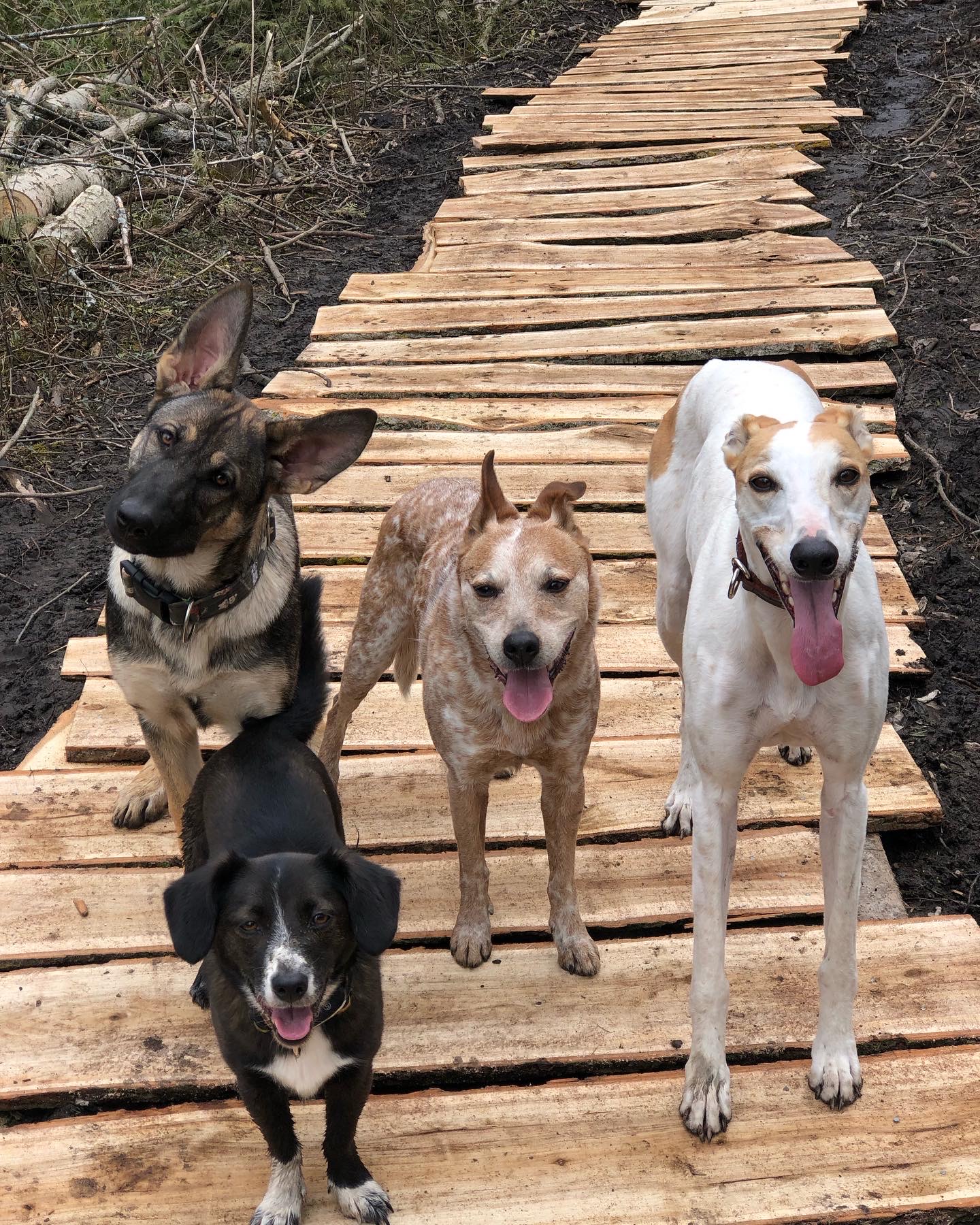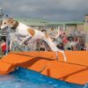 Good with people, dogs, cats and chickensExcellent high jumperBasic agility trainingSwimsOff leash skillsQuiet and crate trained