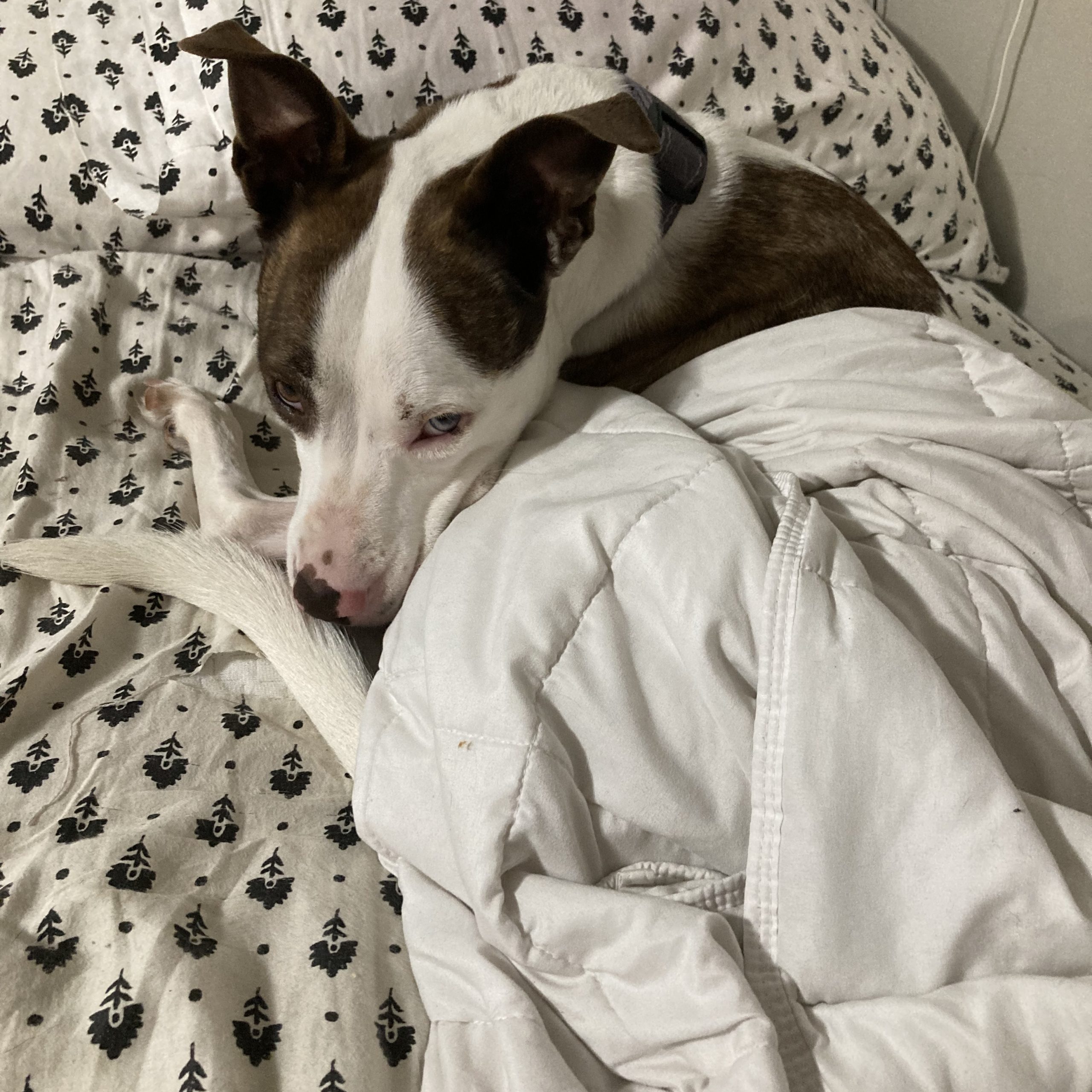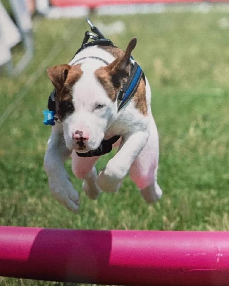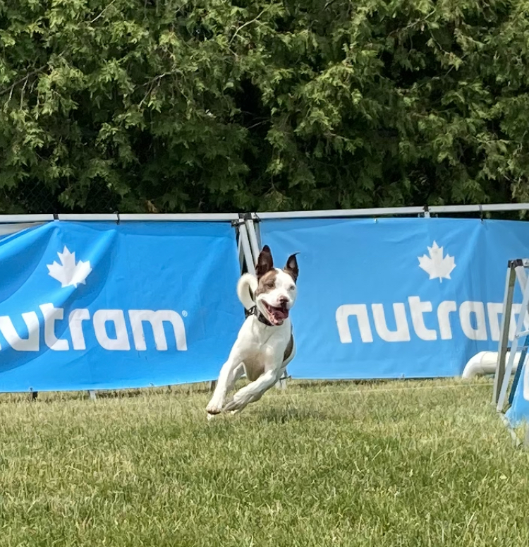 Poppy is a 5 year old bulldog/husky/terrier mix with a ton of personality (almost too much!). Despite her age, everyone we meet still think she’s a puppy because of her size and high energy and enthusiasm. Even though she is selective when it comes to interacting with other dogs (she doesn’t like strange dogs in her face), her favourite thing is showing off as my demo dog in obedience and agility classes. She also gives a great side eye, and clearly thinks she’s the smartest one in the room. She’s not highly food or toy motivated, but would sell her soul for beef liver if the job was exciting enough. She’s also extremely fast, and loves to run, but is also content to spend the day snuggling in bed. She she absolutely loves humans of all ages, especially children. She can swim, but is convinced she will sink like a rock if she can’t touch the bottom.