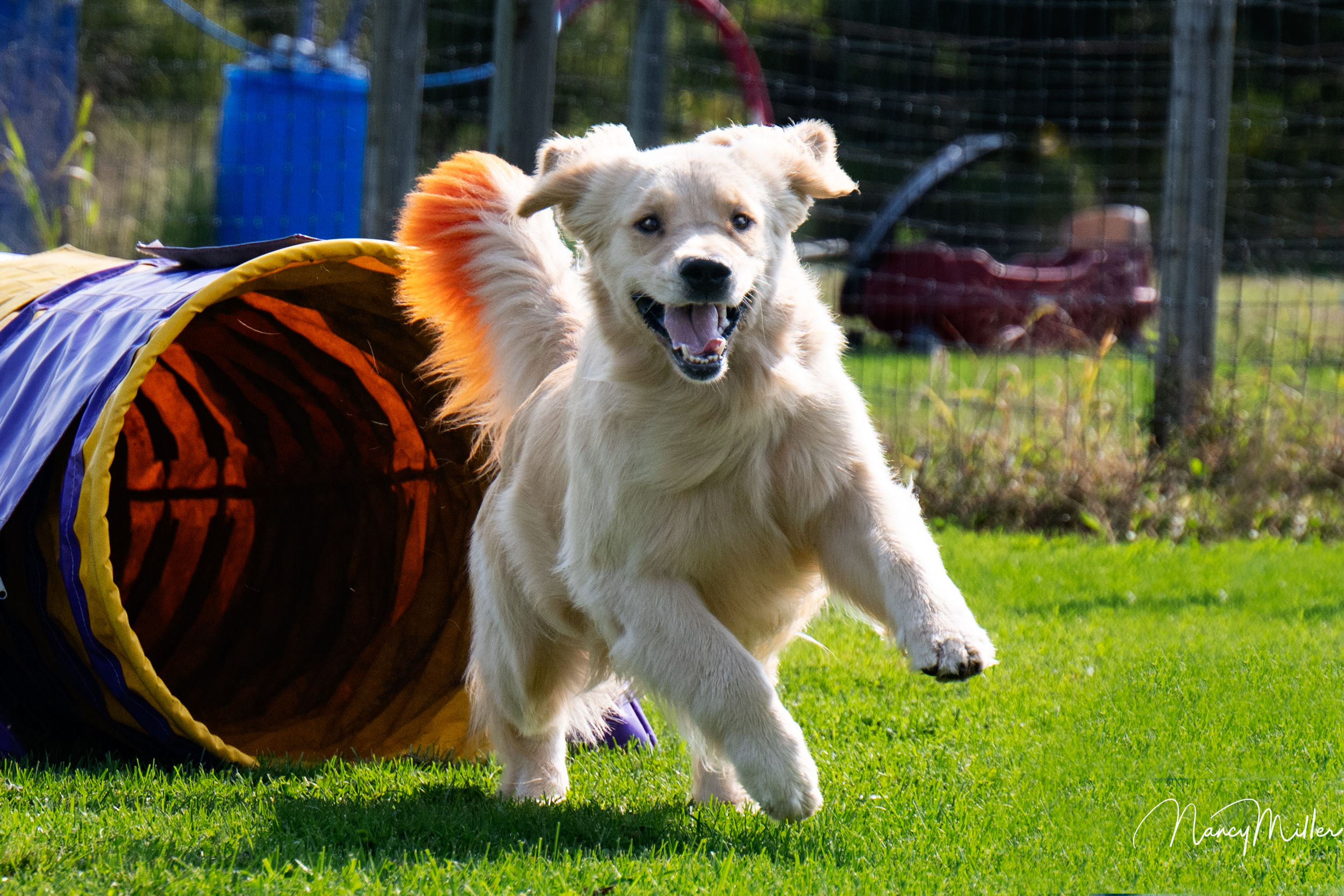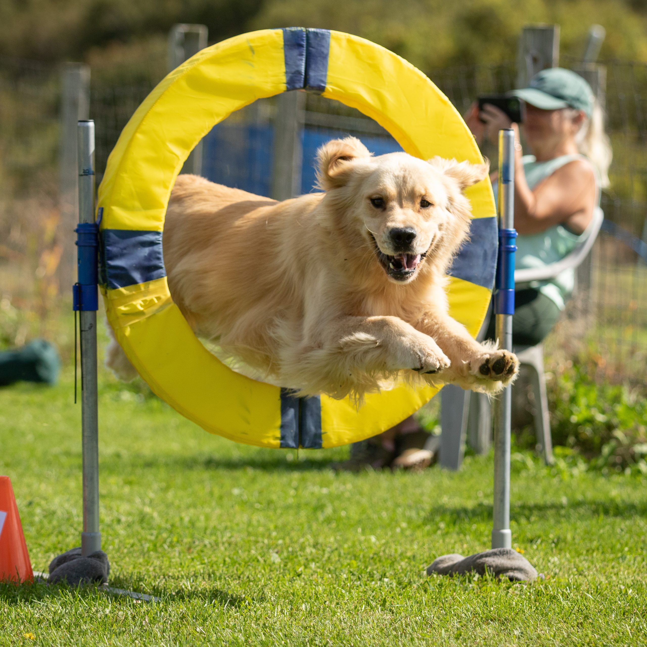 High energy, happy 4 year old goofy golden boy. Loves dock diving, agility, flyball and doing all the things.