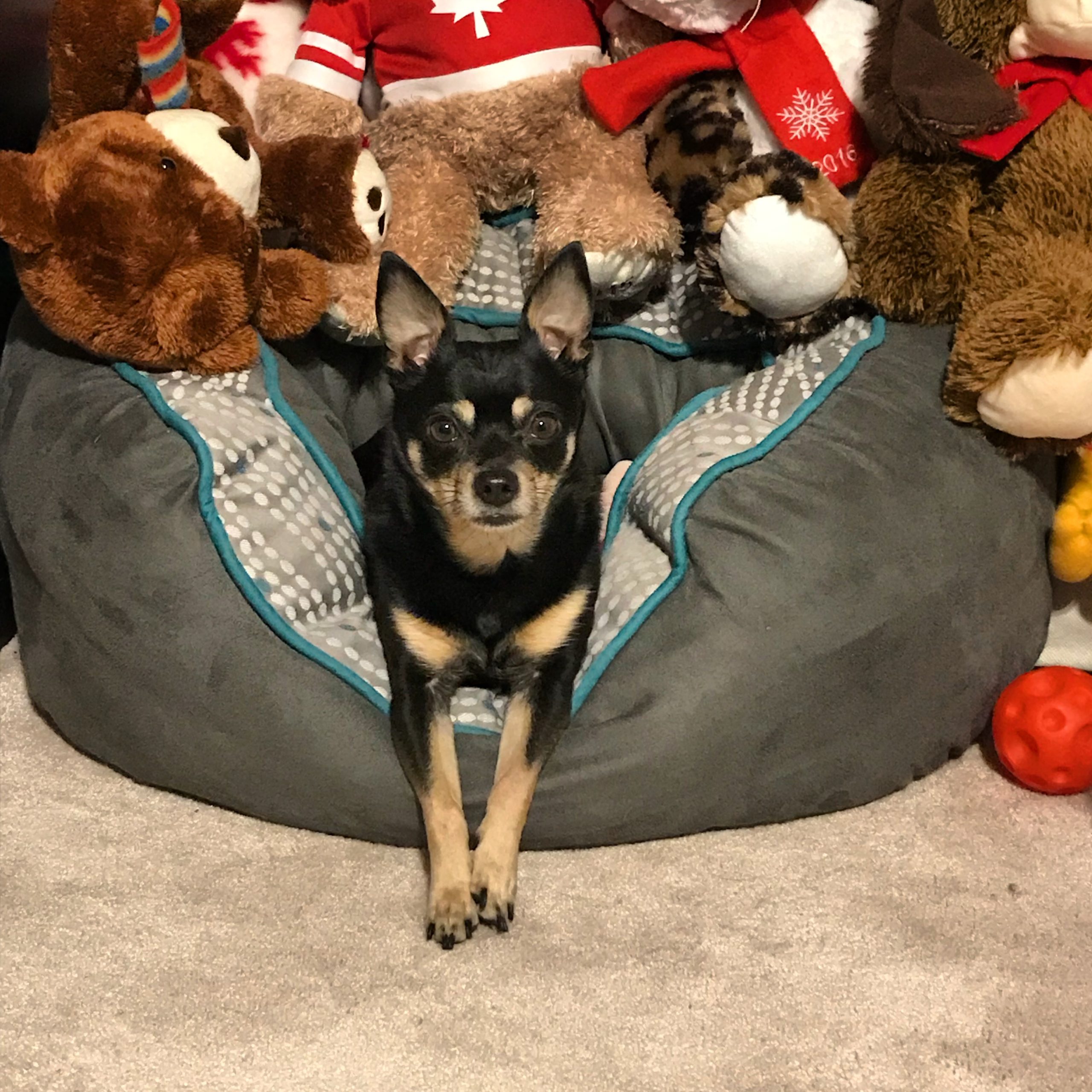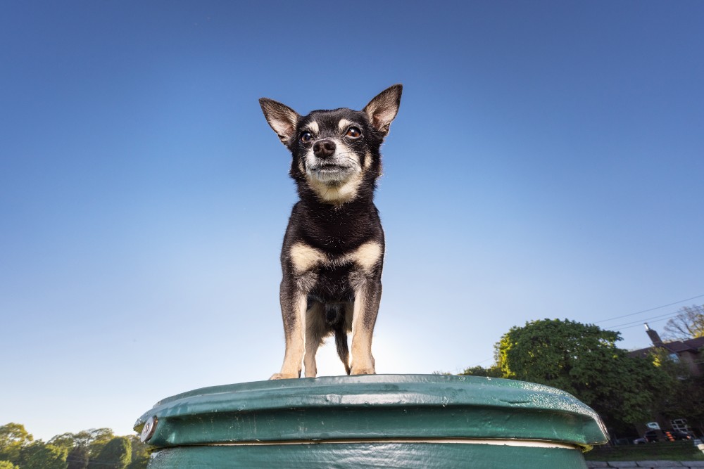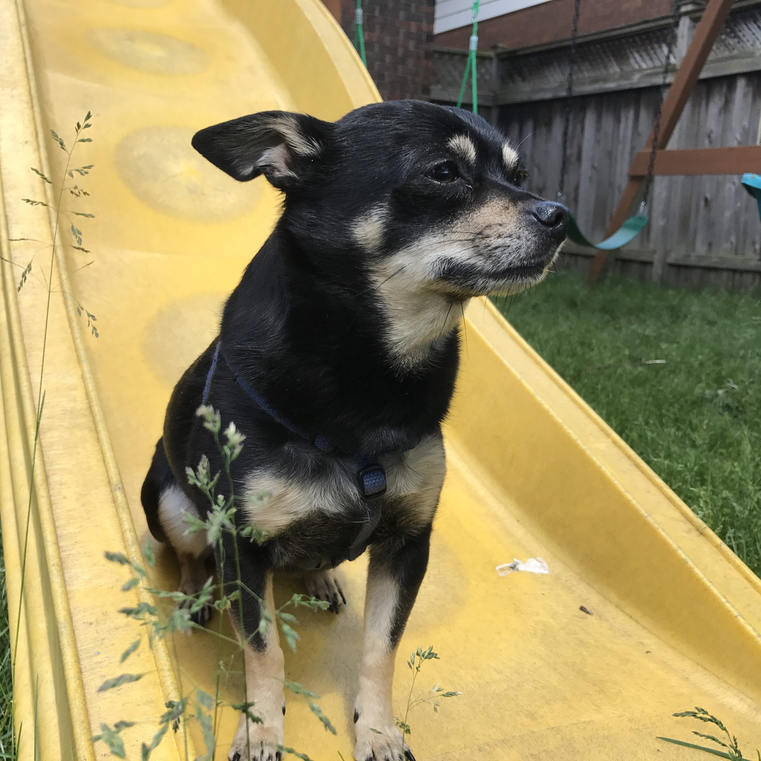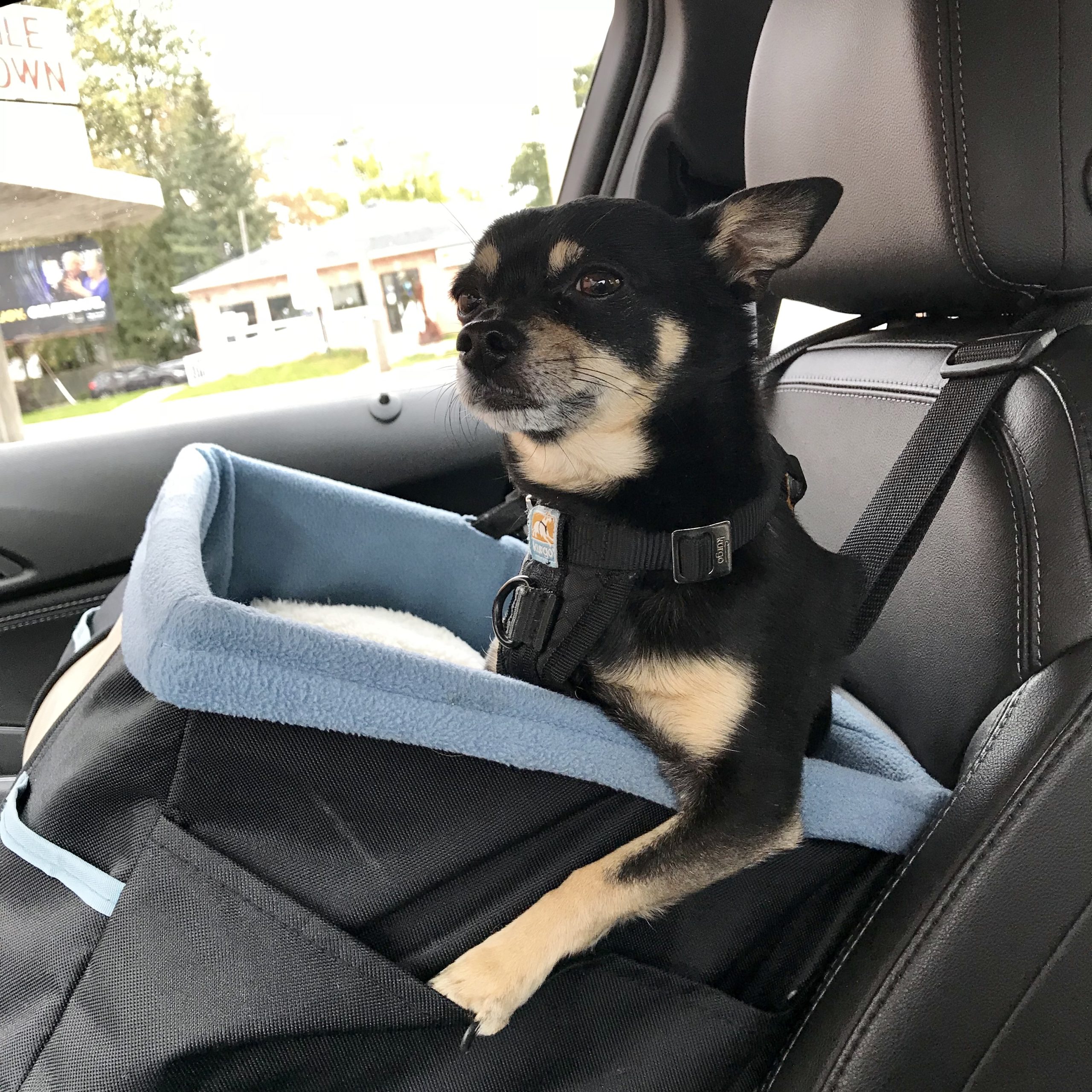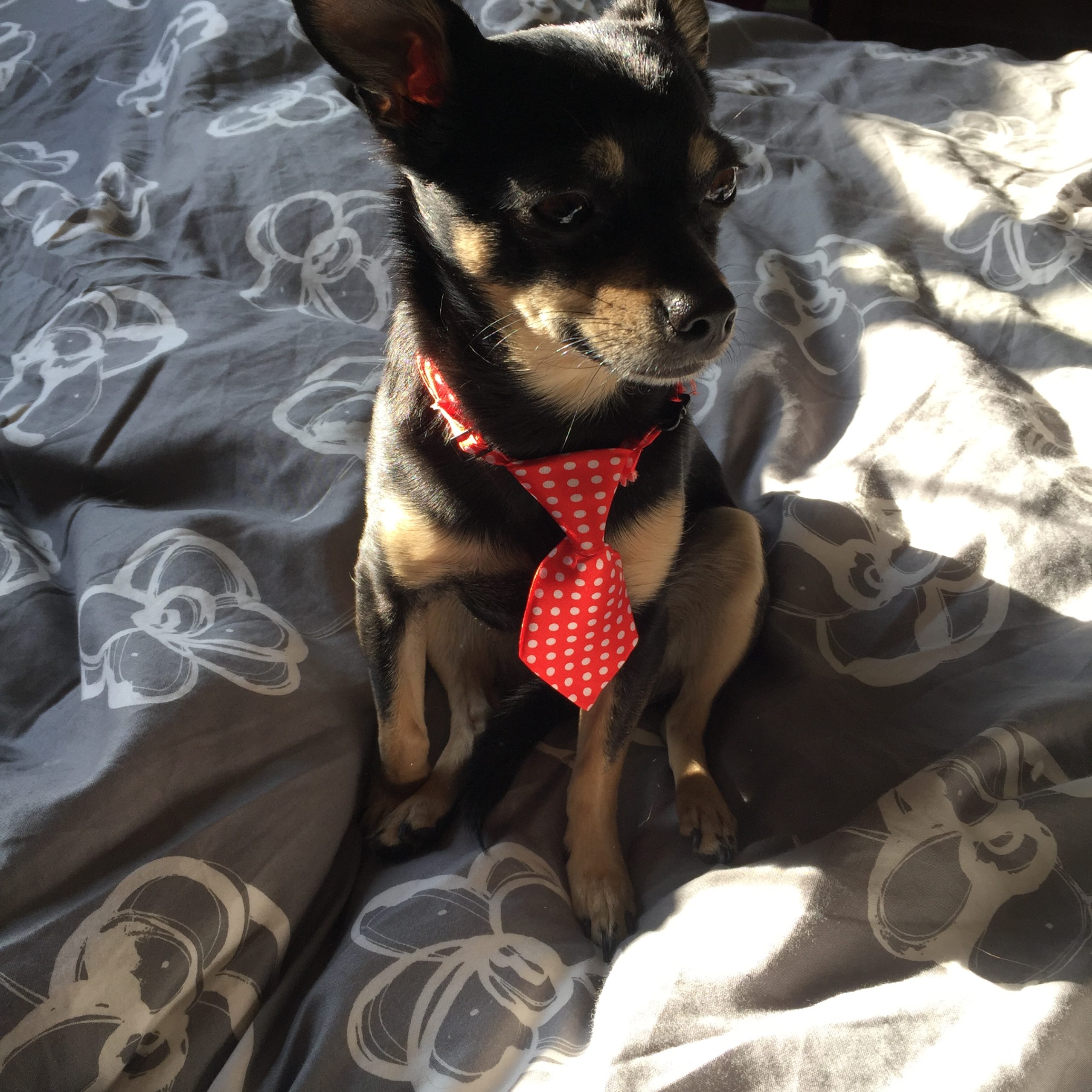 Rigley is a playful boy who loves car rides and exploring new places. He is very food motivated and learns quickly. He is not a fan of water, but does know how to swim. He will sit on a surf board or other item on the water though. He is not a barker, but doorbells will get him barking. Rigley will sit in a purse or climb a mountain, he's always up for the fun and challenge and he will wear clothing without a fuss. He aims to please and his tail is often wagging. He has taken some canine acting classes to learn some basic acting comands.