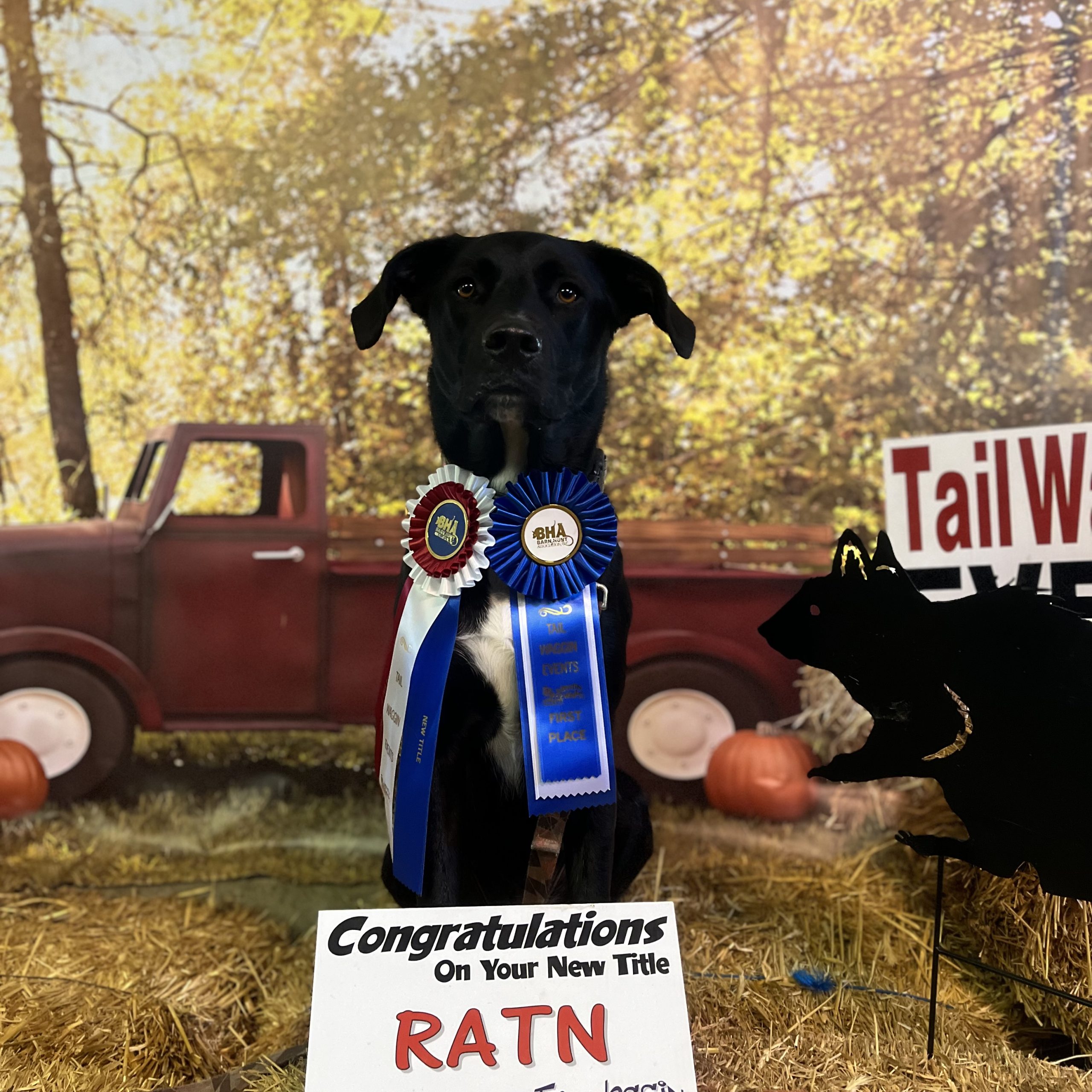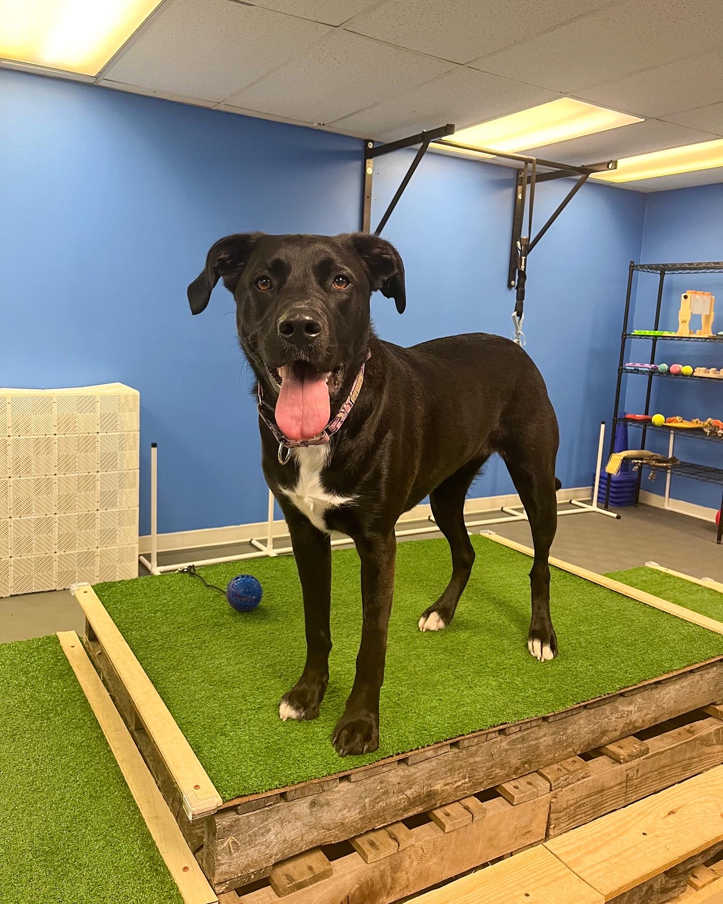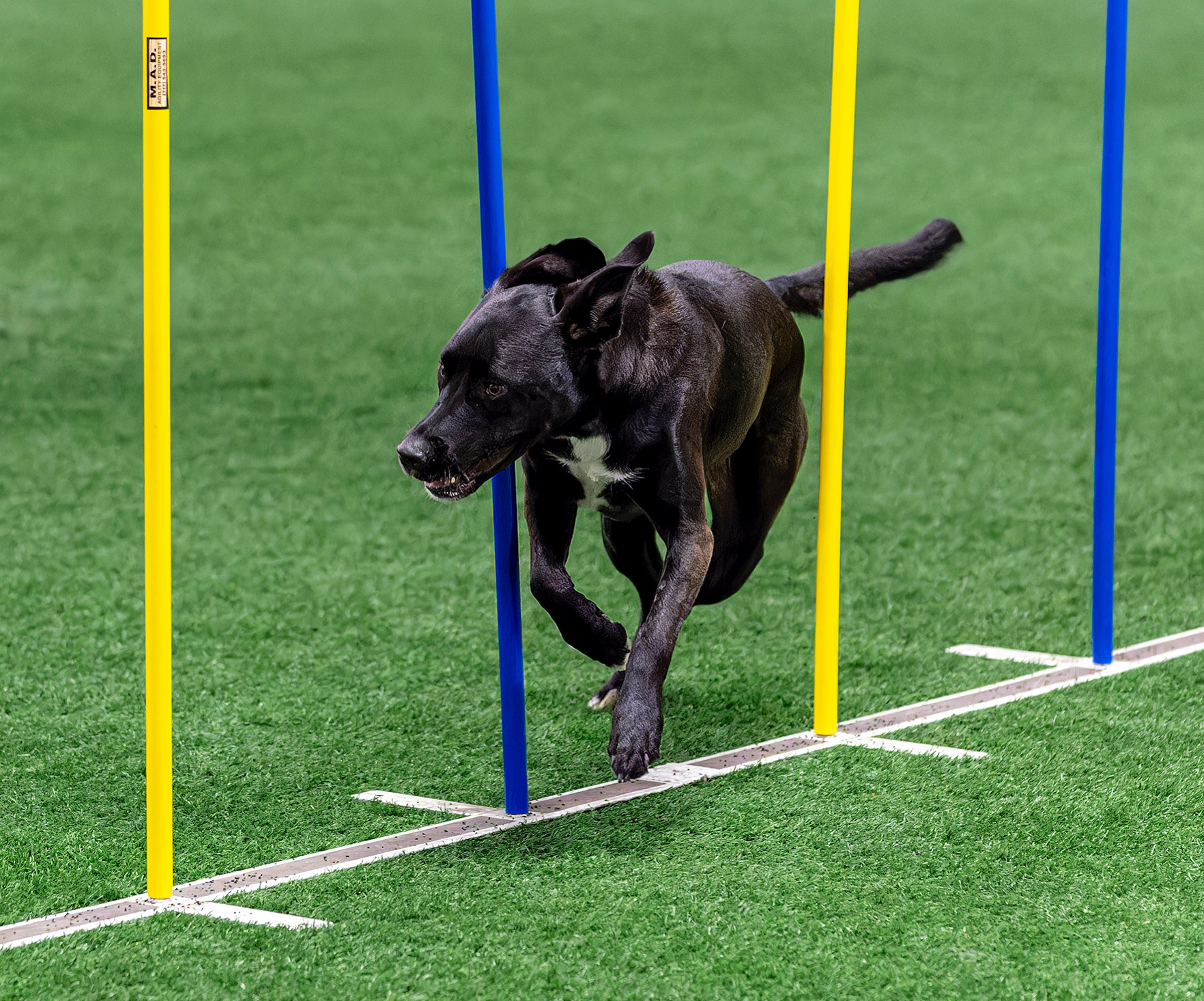 Black female Labrador mix with white chest and happy fun personality. Very happy dog, very friendly dog. She is very quiet, does not bark. Very obedient and enjoys working. Trained in agility, fastcat, fly ball, and to do many tricks. Incredible swimmer, loves water, and runs 27.5mph over 100 yards. She loves everything and everyone
