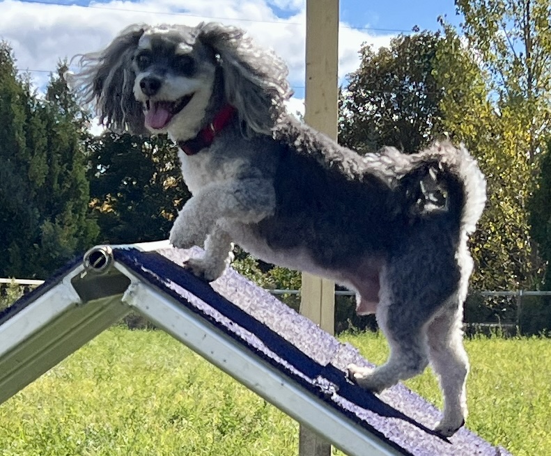 He competes in agility and has his Agility Dog Of Canada title. He received his novice, intermediate and advanced trick dog certificates but we went no further with that. We have done no trick work since he received his certificates. He competed in his first Barn Hunt trial in September 2022, he did some training in tracking and scent detection. He is a fun loving boy who is living his life to the fullest.