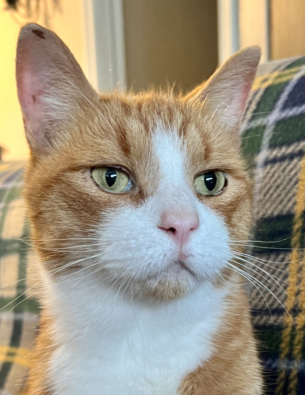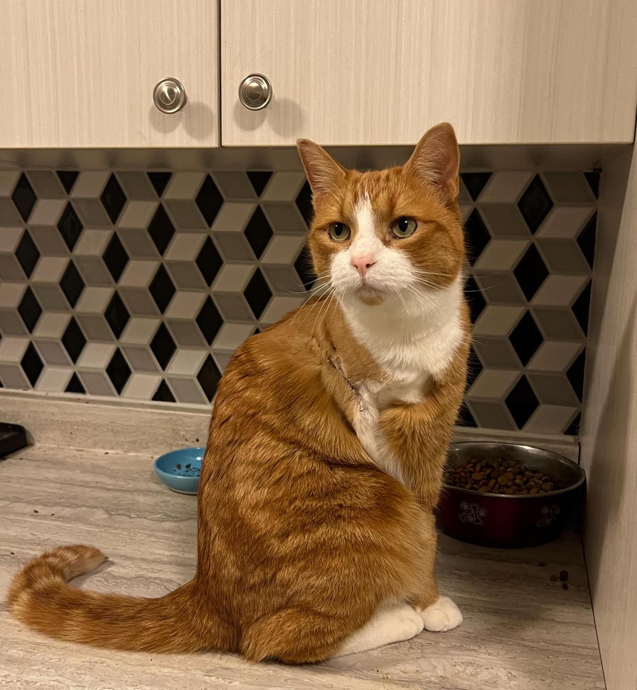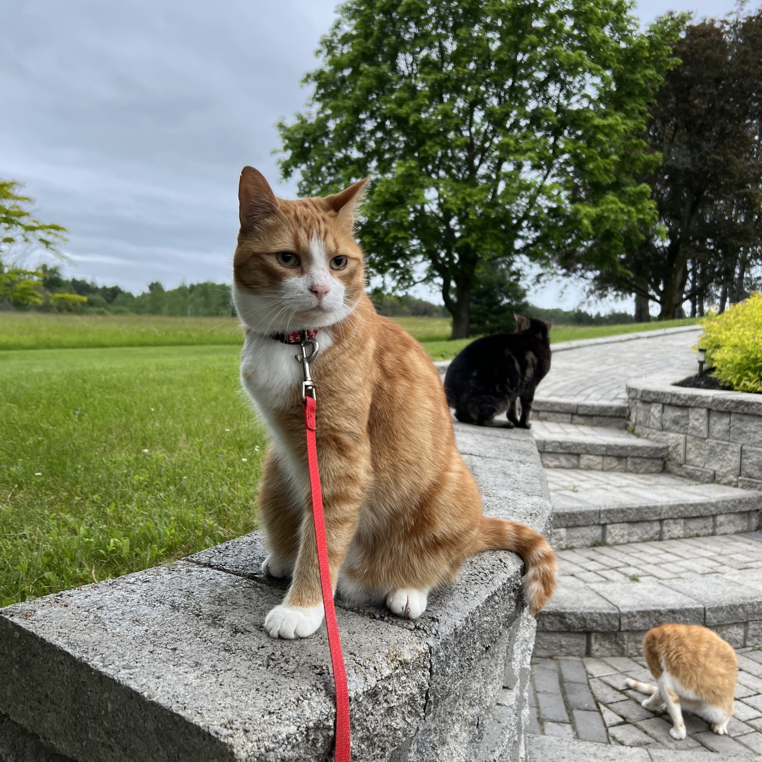 I was a city cat but didn't like being confined to the indoors so I was able to move to a farm in the summer of 2020. I love being a barn cat and have all the freedom a cat can ask for. In October of 2023 I was out playing with the other cats on a beautiful sunny Wednesday morning and the unthinkable happened, six coyotes appeared, the other cats made it to safety, I tried but didn't succeed. For days I could hear my mum calling me and I couldn’t respond and then on the Sunday night I managed to make my way home, I came crawling into the barn, let out a huge meow to let my mum and dad know I was there and then laid down on the barn floor. I did it, I made it home to safety it took me a long time but I did it. I was starving and dehydrated so I was instantly taken to the house for some food, water and a warm bed and first thing Monday morning I was off the the vets office and after X-rays and blood work the vet broke to the news to my mum, the nerves and muscles in my front leg were destroyed beyond repair and they had to remove my leg. I'm doing great but now I am back to being a house cat and I get bored quickly, so my mum decided that for something else to do she would sign me up with Furry People Productions. So if you are looking for a loving 3 legged boy, then look no further because here I am.