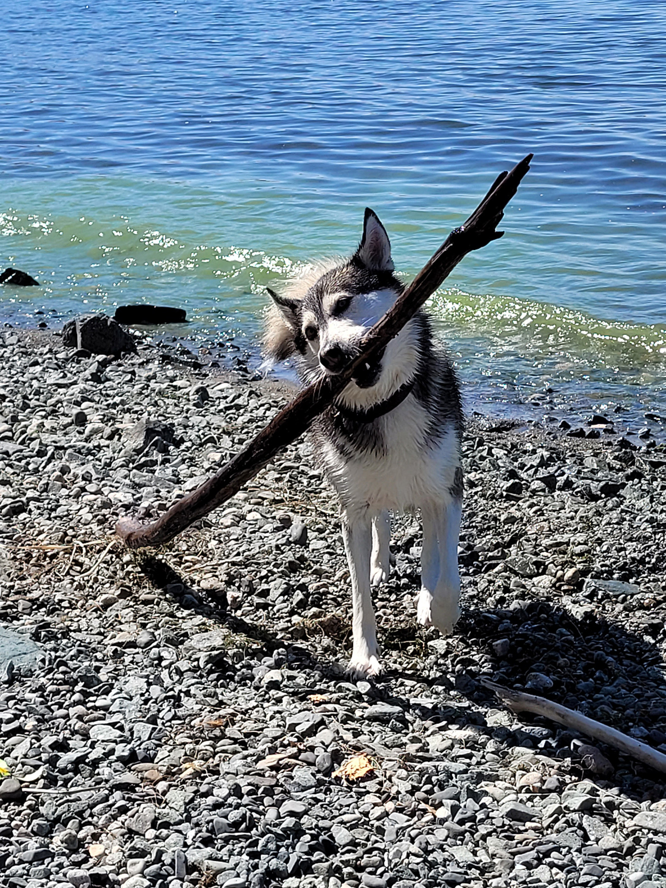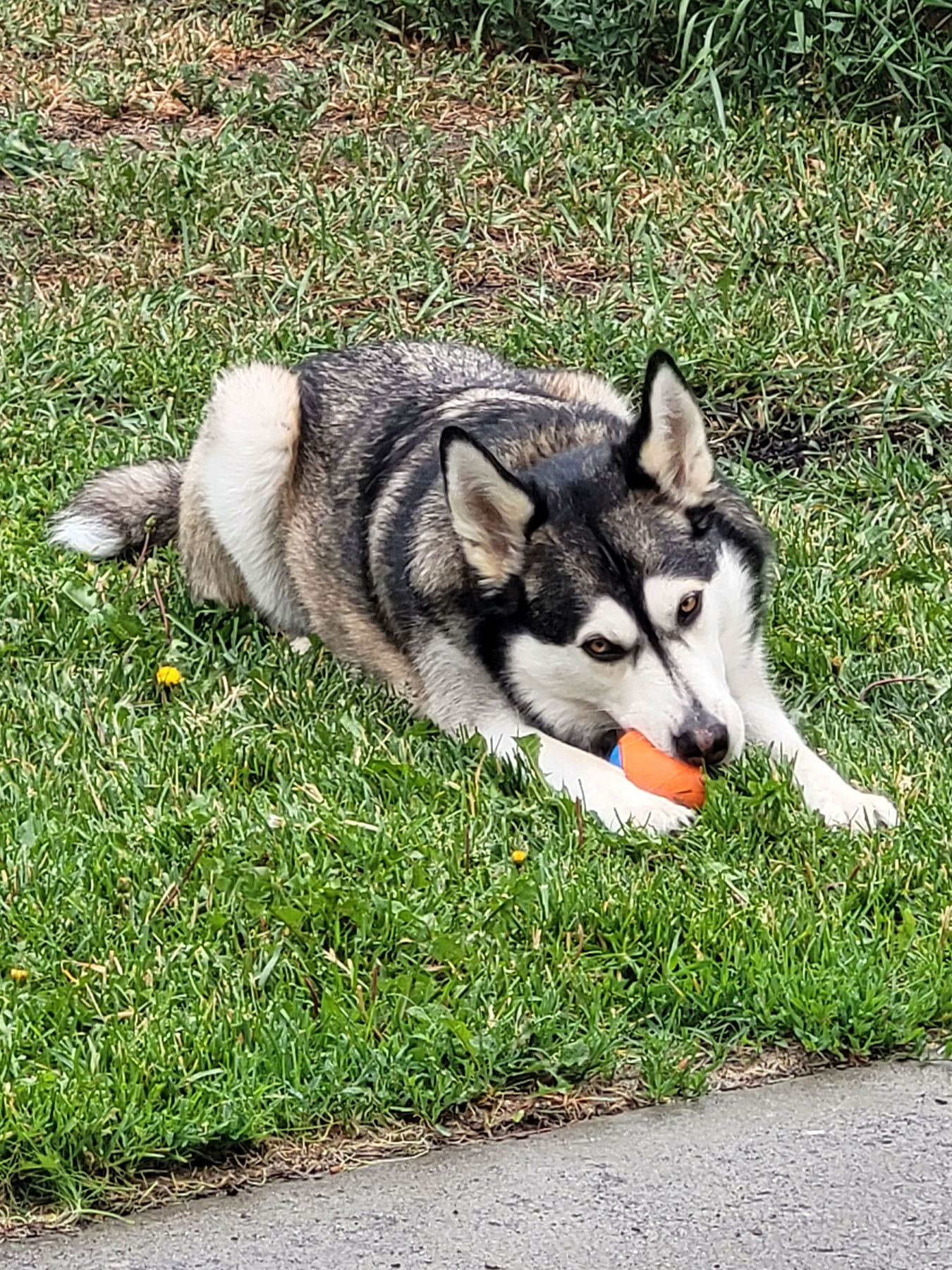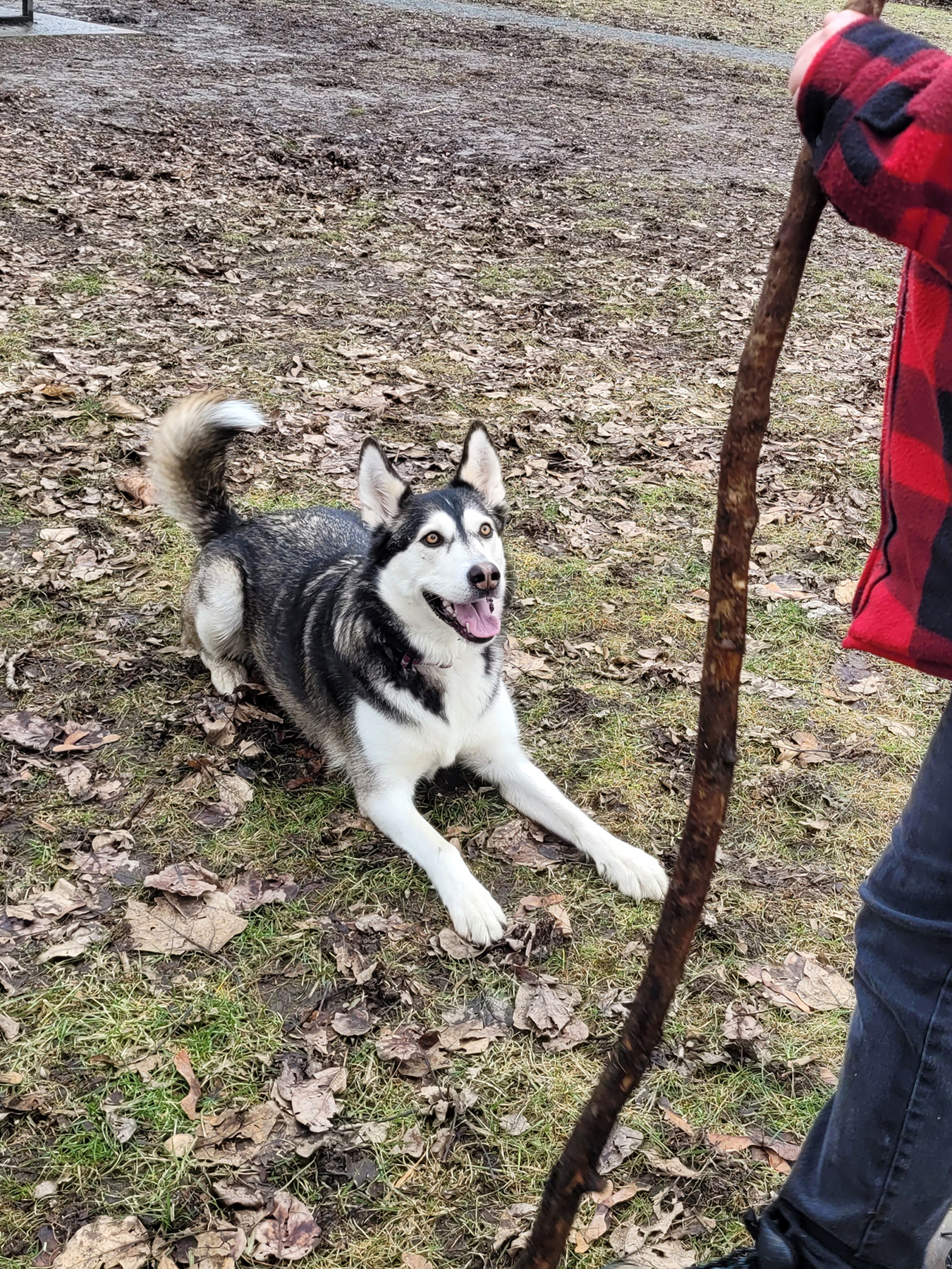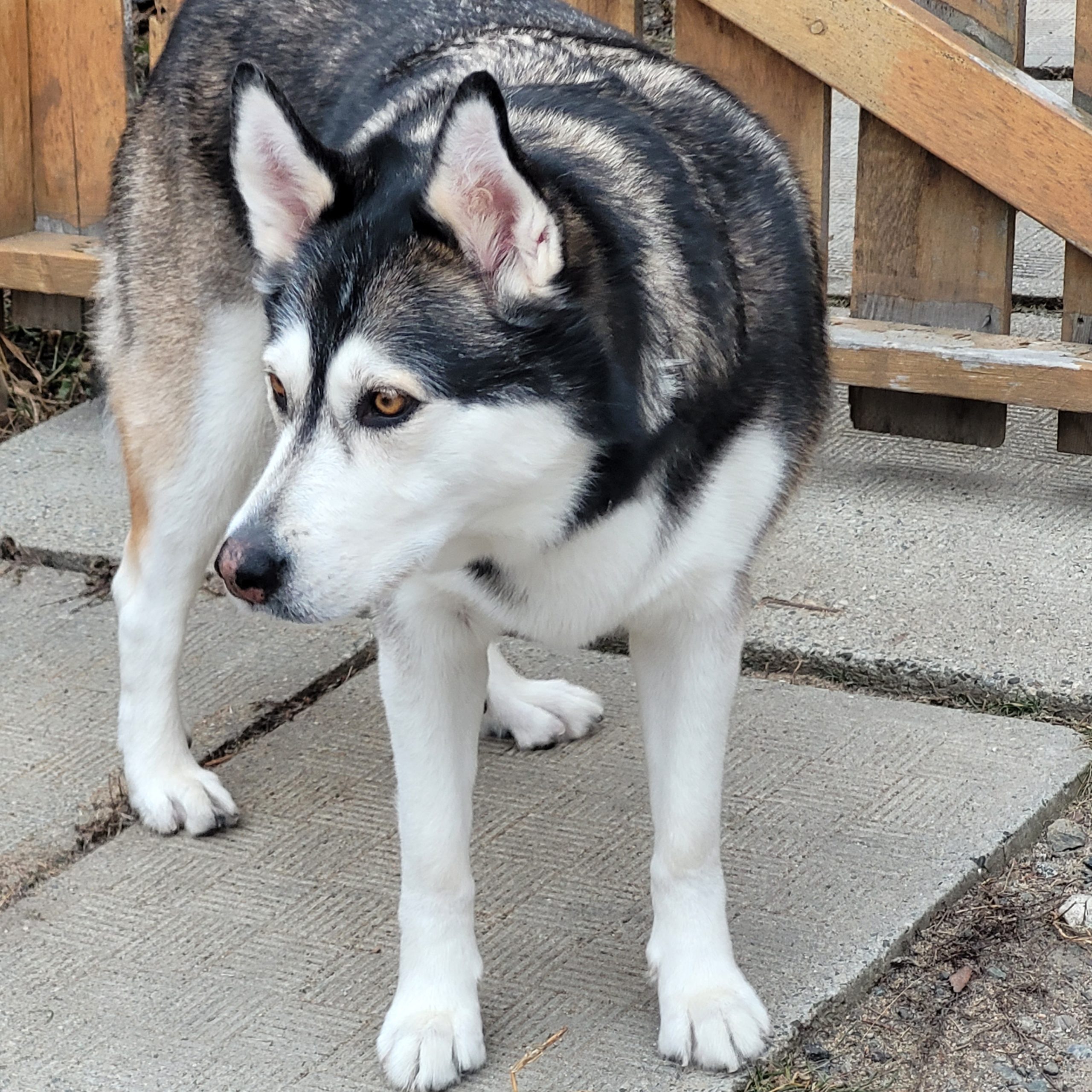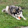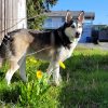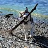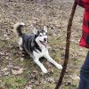 Sandi is a Happy Husky! Not a pure bred Husky but more of an Alaskan Husky, brown eyes, longer legs for team sleds. She is very friendly and obedient. Easy to train, she'll do anything for a treat. She likes water and can swim. Her favorite game is Fetch! She enjoys walking on or off leash.