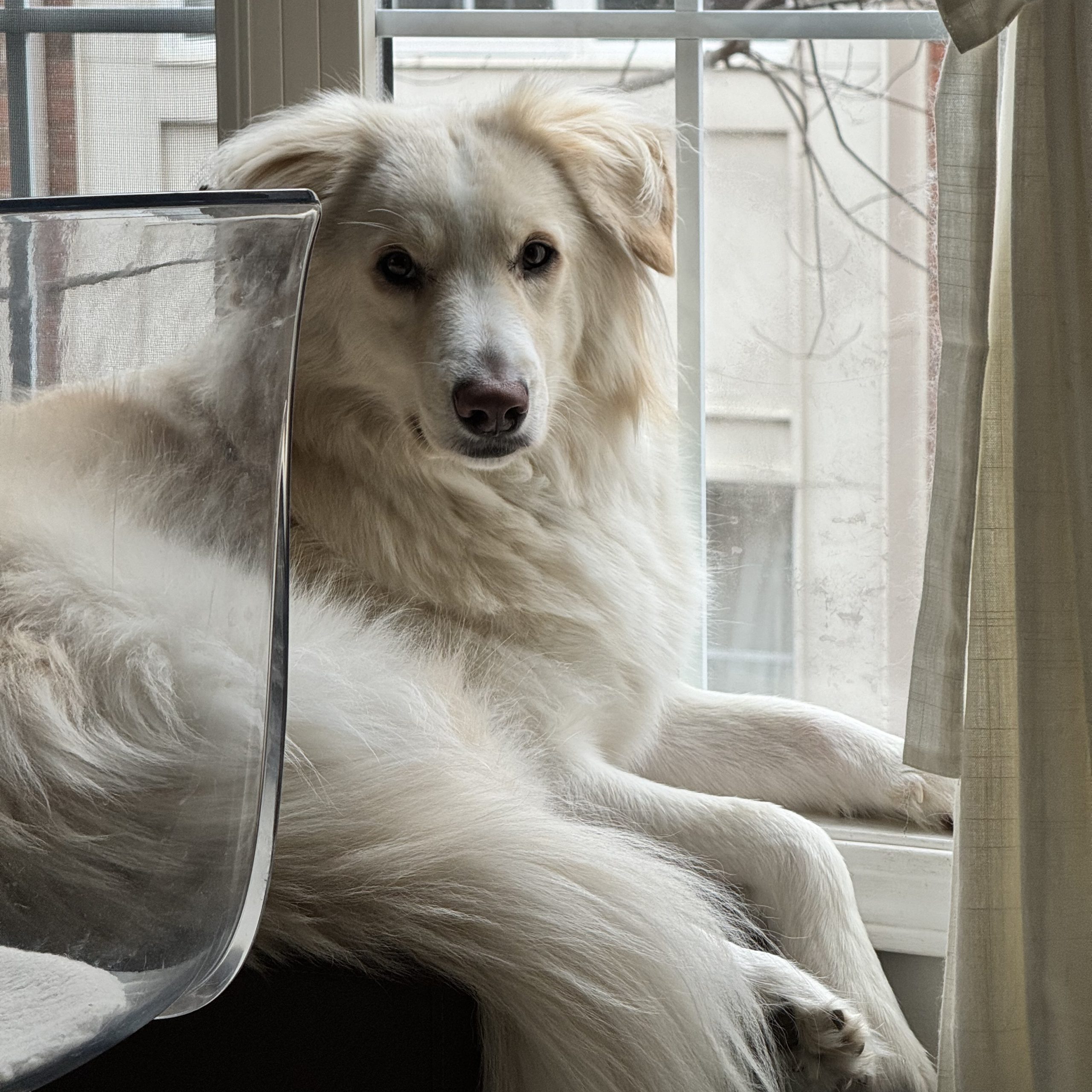Stanley is a hilarious character, and a big ball of energy. His mom runs a photo studio for a fashion brand so he is used to studio environments as well as very familiar with being in front of a camera (hence the hilarious professional images). Stanley is extremely food motivated and can be bribed to do anything - you would think we starve him but I assure you we don’t. Stanley is extremely friendly with other dogs, and loves people/children as well (be careful if you get to close he will try to lick your face). Stanley loves the snow and has recently become a big water dog (bath time not included that’s still no bueno). Stanley is a rescue from a reservation up north, and was adopted through “New Collar Collective”. Stanley was in an Urban Kids campaign (picture of the store window can be found in his images) and he did extremely well on set. Stanley (also known as Stan the man) is sometimes confused for being a female dog, but he is very much a neutered male.