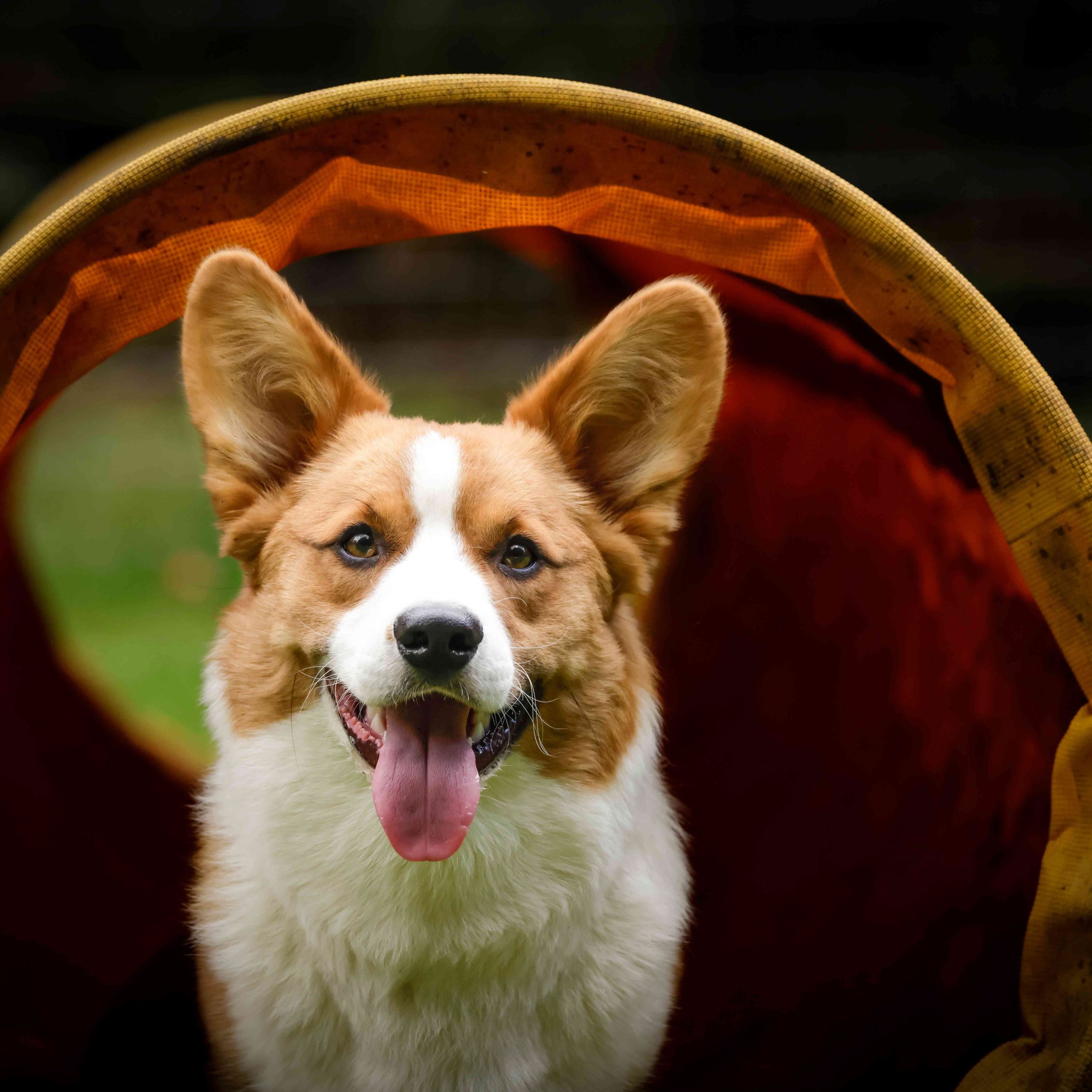 Stryker is a huge personality in a little Corgi body. He is friendly and eager to learn. Although only 1 year old, he has a tremendous work ethic. Everyone who meets him falls in love. He is expressive and loves humans. A young girl described him as " he's like petting a cloud!" He works well amongst other dogs when focused. Loves his mat work and has tons of energy. Works very well with photographers.