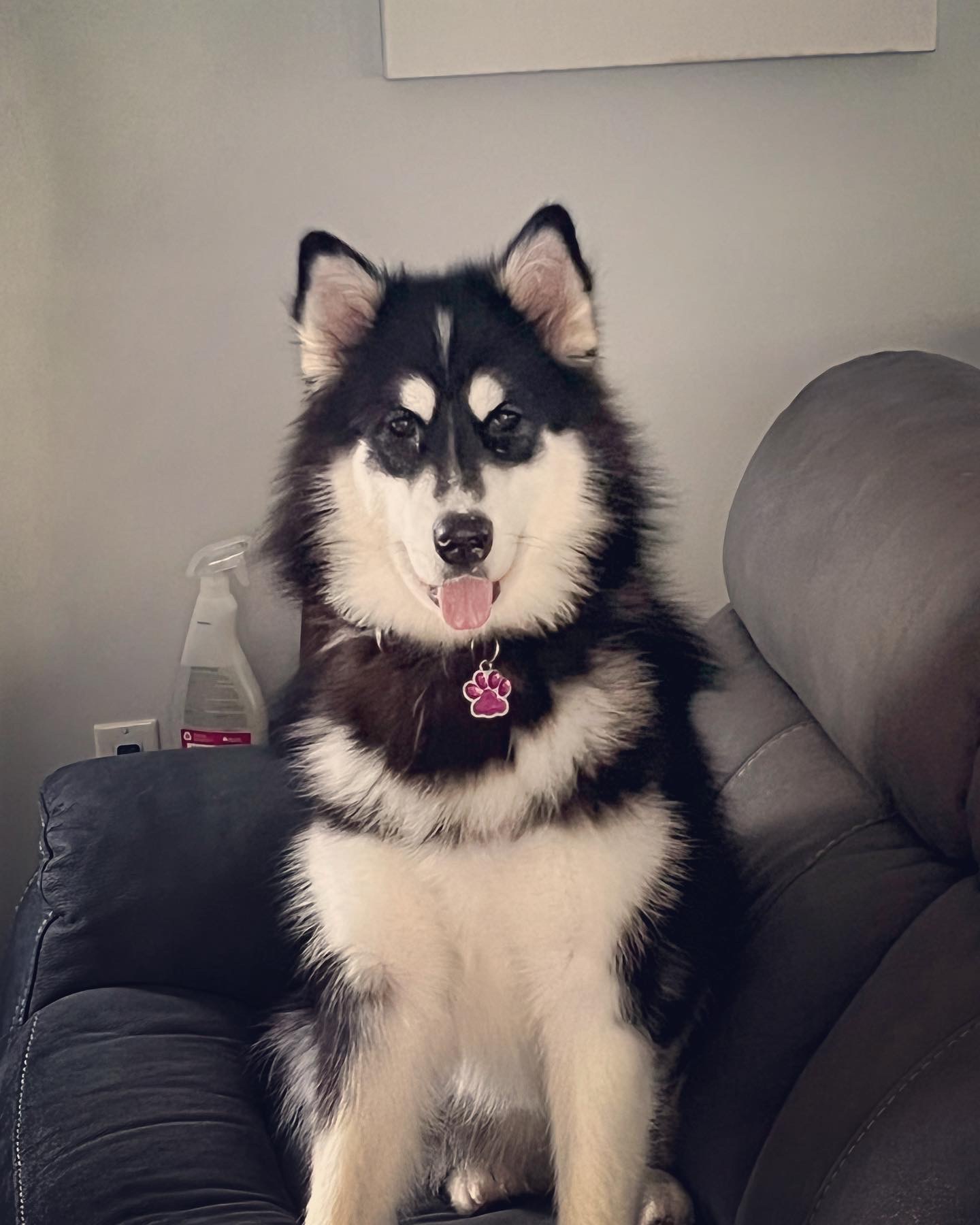 She is very sweet dog, like to be with humans and love to play with other dogs. We are only feeding her raw along with other multiple nutrients which keeps her fur glow in sunlight and her patterns make her look different