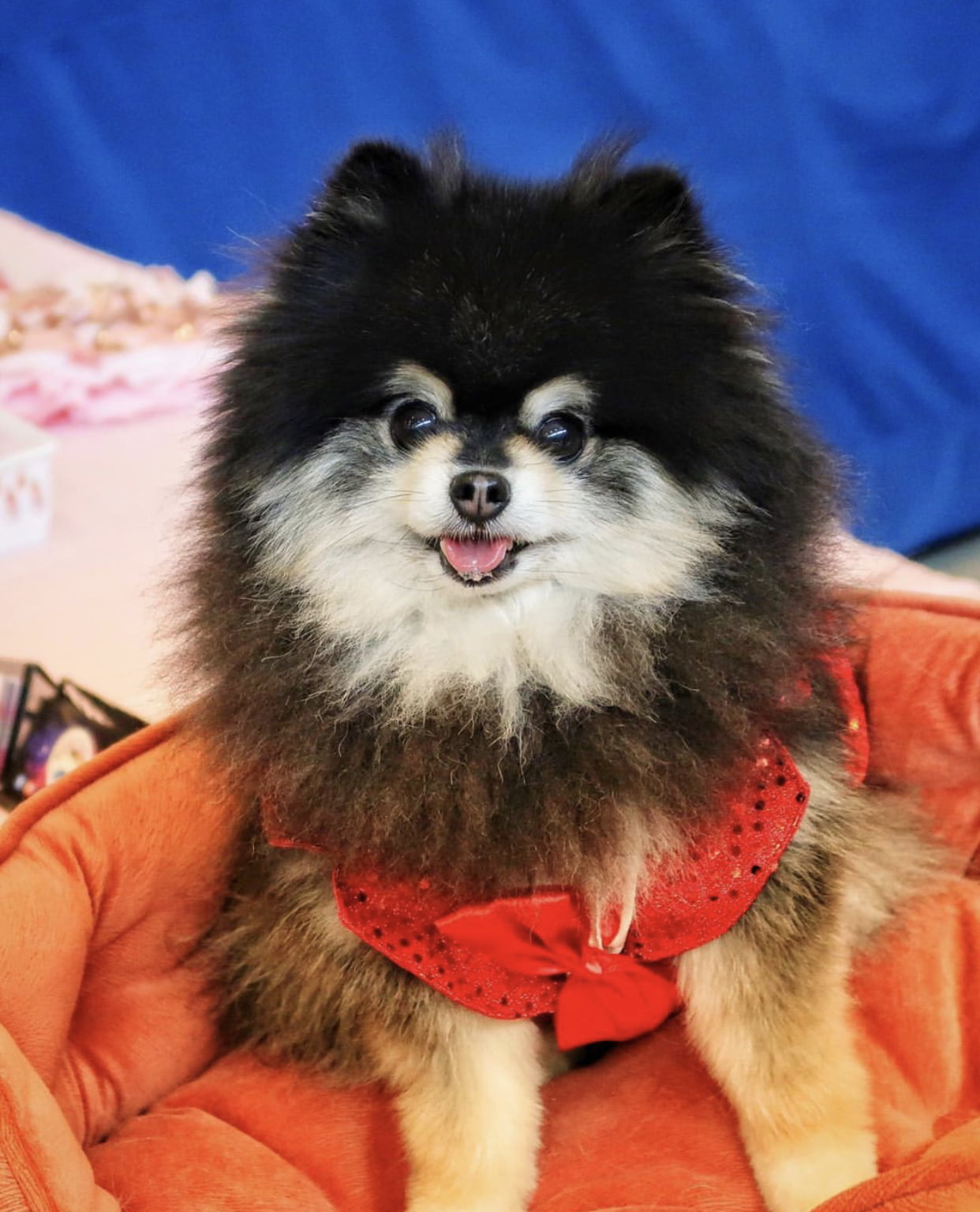 Toby is generally a chill dog. He has his bursts of energy at times and is quite the funny character. Loves people as well. He is a rescue so to see where he came from and now is night and day. He is amazing at modeling. His smile and button eyes are one of a kind and melt everyone’s hearts. You can’t help but fall in love with him as soon as you meet him.