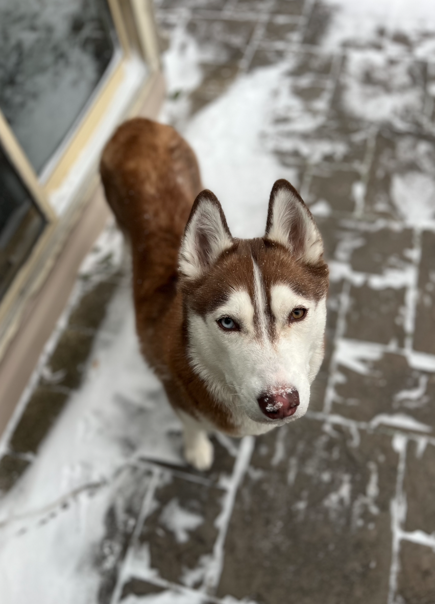 Tokyo is an energetic and extremely friendly dog. Siberian Husky with Red Fur. One eye blue, and the other eye is Hazel. Very beautiful, we have people stopping their cars on busy roads to see her on a regular basis. Shorter and smaller than most huskys, so people always think she's a puppy. Very treat motivated and easy to train. Gets along great with all dogs and people. Runs fast, good with roller blades and bike riding, can pull sleds.