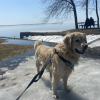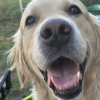 Golden retriever very friendly loves people, knows when people are taking pictures with him