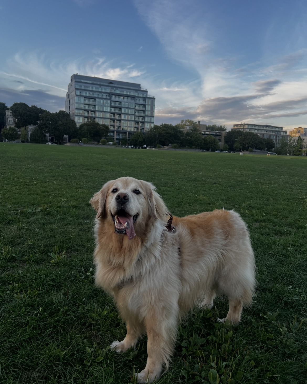 Tosti is a friendly, high-energy Golden Retriever with a very social and outgoing personality. He is extremely comfortable around new people and quickly makes friends with everyone he meets.