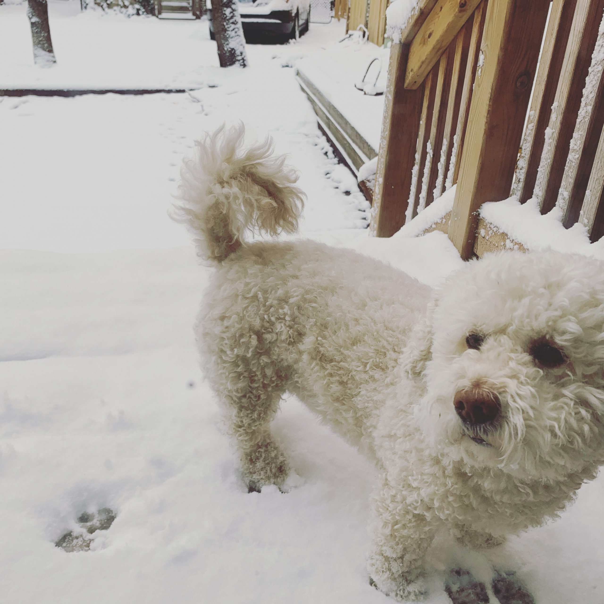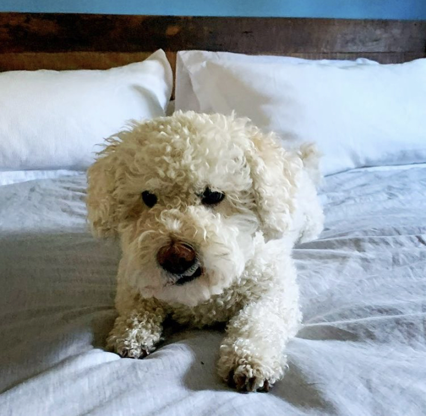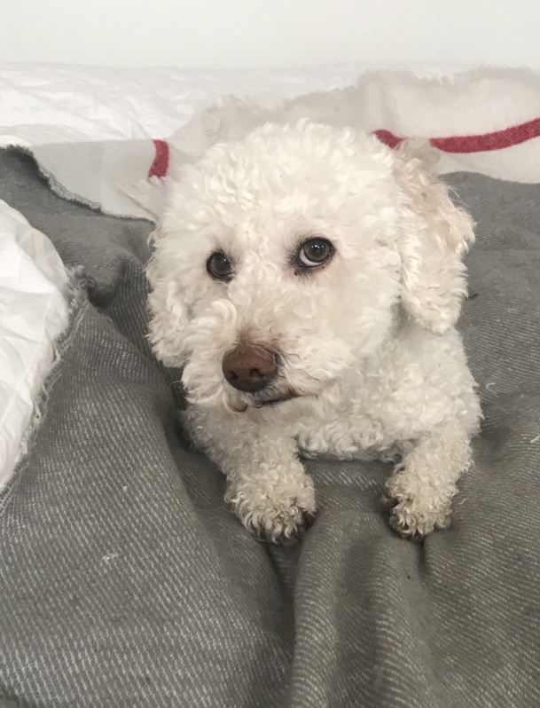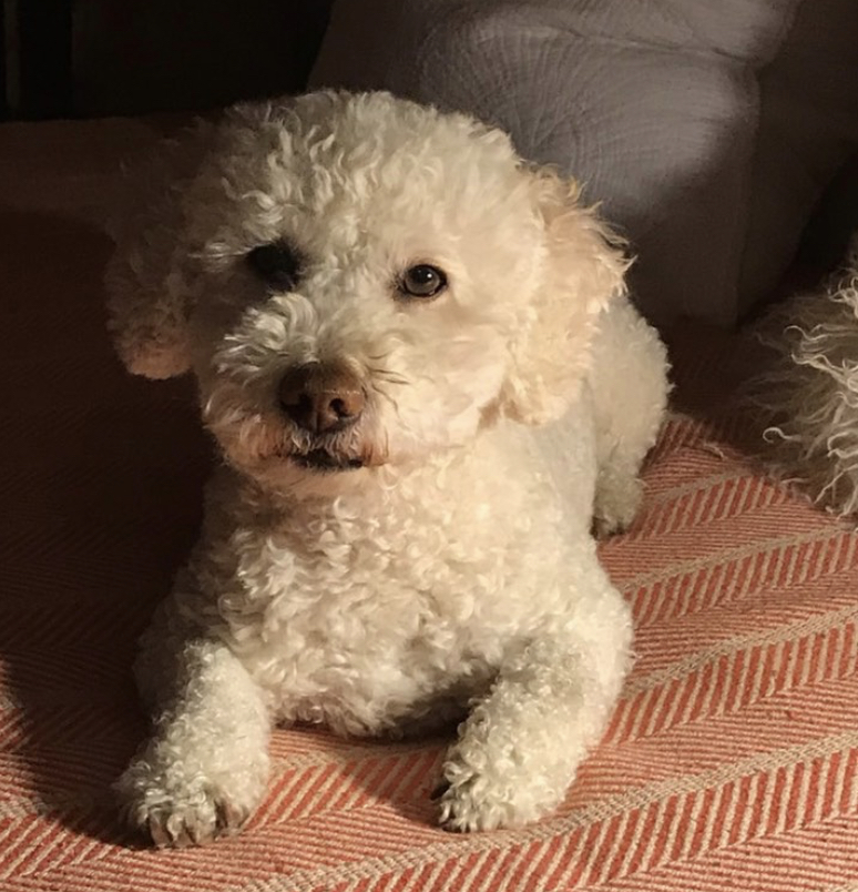 Walter is playful, smart, humorous, charming, calm, and thoughtful. He's great with people of all ages. He is communicative, expressive and fun, and creates his own playful games if you're smart enough to play along. He's full of character, fun and sass. Walter is food motivated. He would jump through a hoop of fire for a liver biscuit. He can hold a look for the camera for long, extended periods of time. He responds well to praise and doesn't get easily rattled or over stimulated or anxious. He can submerge his head in water for up to 10 seconds to retrieve a beach rock, and focused like a ninja, he finds the exact stone which was thrown. He loves a good game of catch. A great dog to walk with and he runs with spunk. He is trusting and gentle. He'll rollover and stretch whenever a rub is offered. He enjoys a full body massage and is comfortable being touched everywhere, including his paws and ears. He always draws attention to himself whether he’s out for a walk or just sitting around the house. He has natural charisma, magnetism and charm. One must never overlook his dry sense of humour. His eyes  are very expressive which makes him even more adorable. His short front legs splay out slightly like Charlie Chaplin. He lives with four kids ages 9-16, with many people coming and going. He’s used to tons of activity around him and always keeps his cool. His groomer says he's the best looking Bichon she’s ever styled. Yep, he’s pretty much the best.