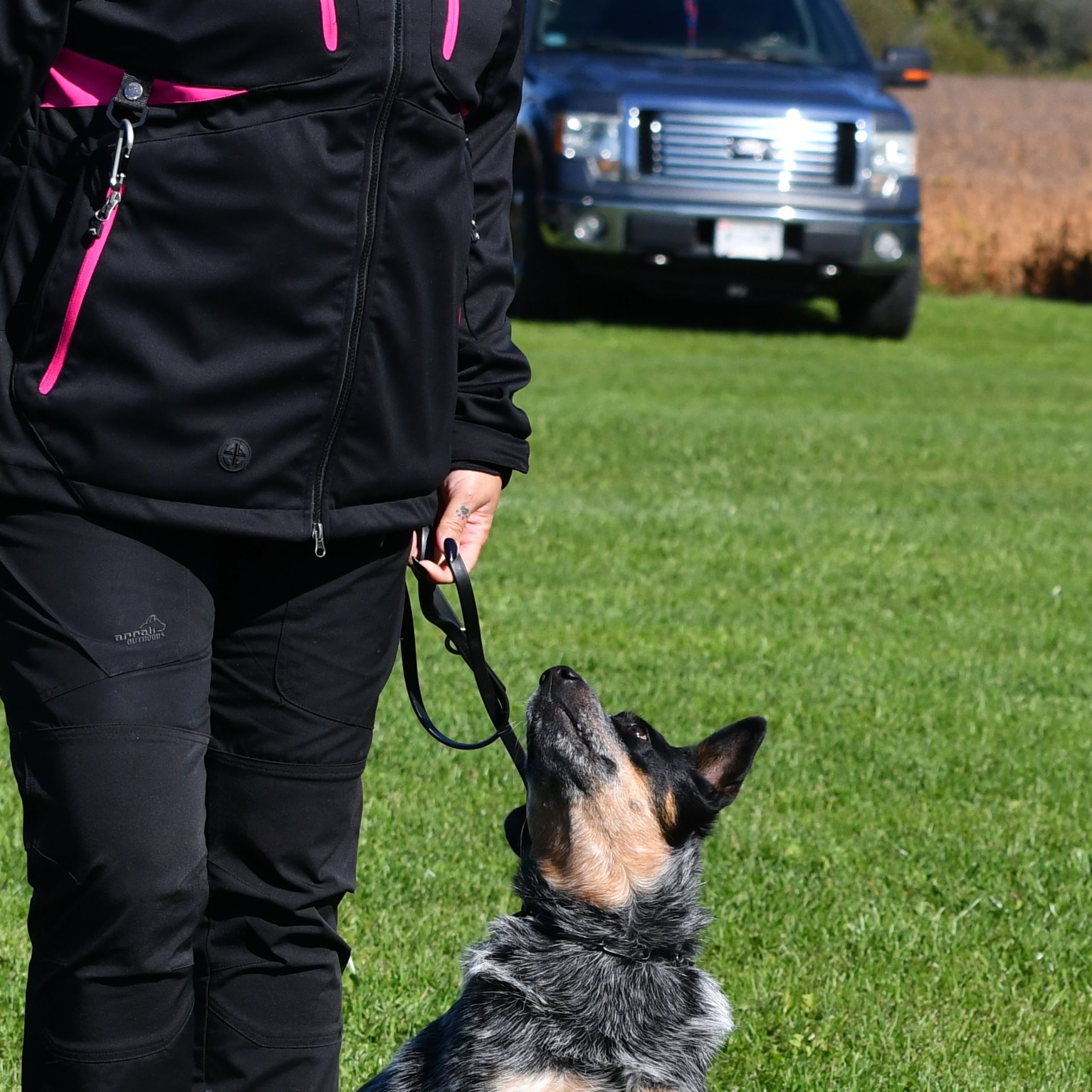 Whip is a high drive, extremely smart and willing with a spunky personality. She learns and patterns new commands very quickly.