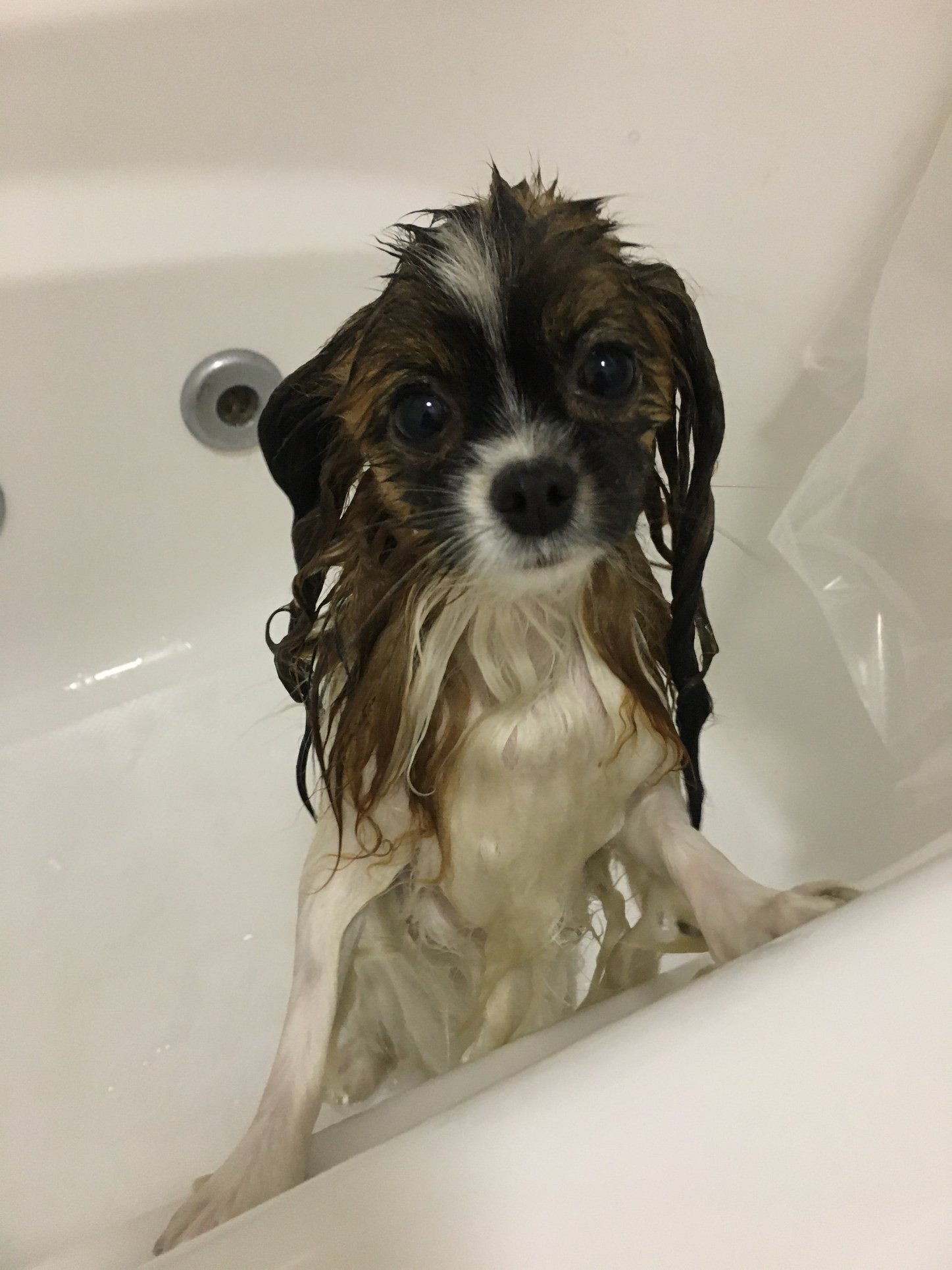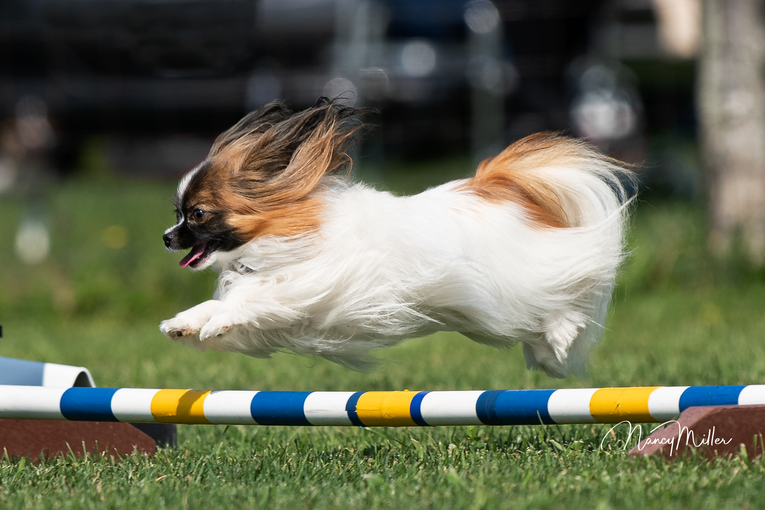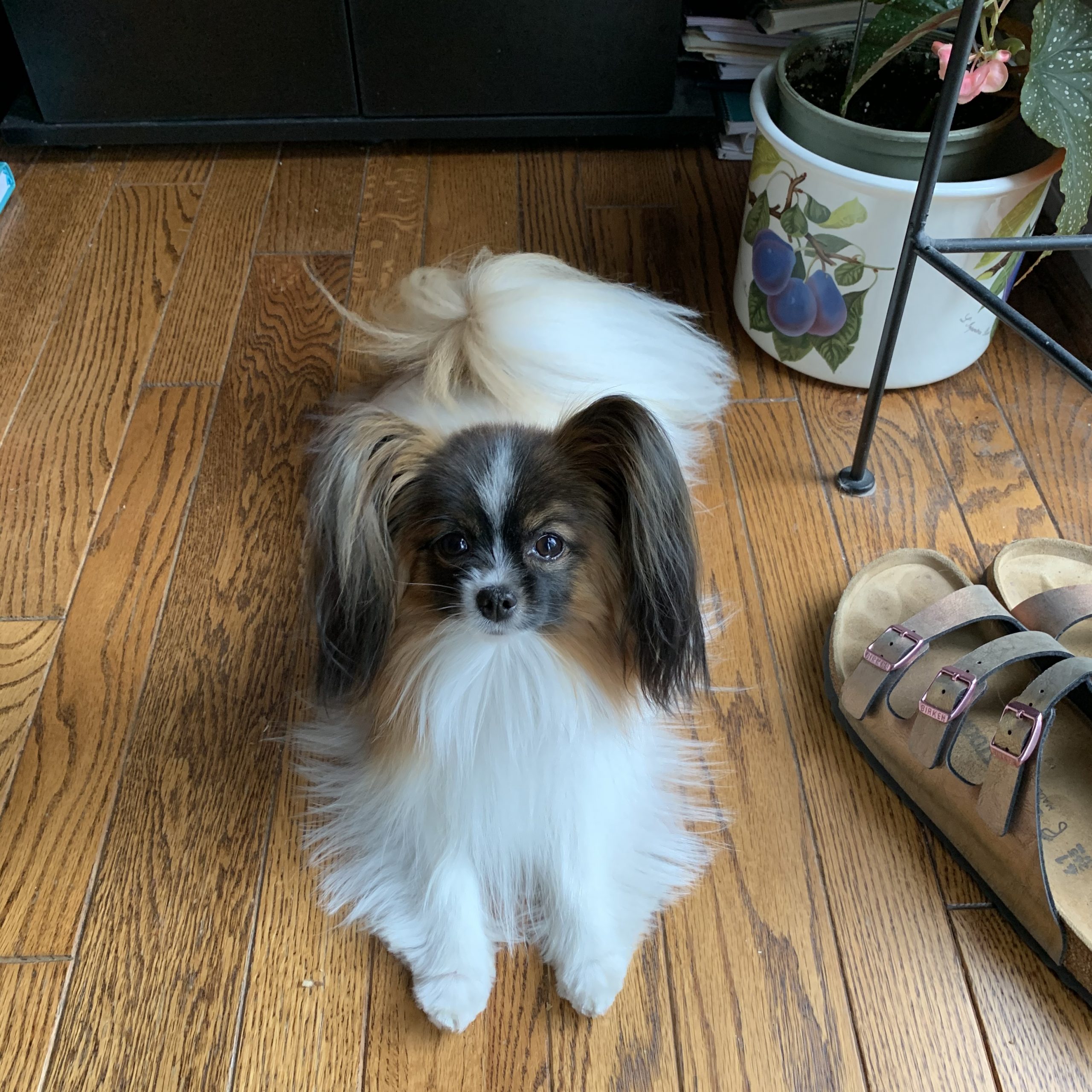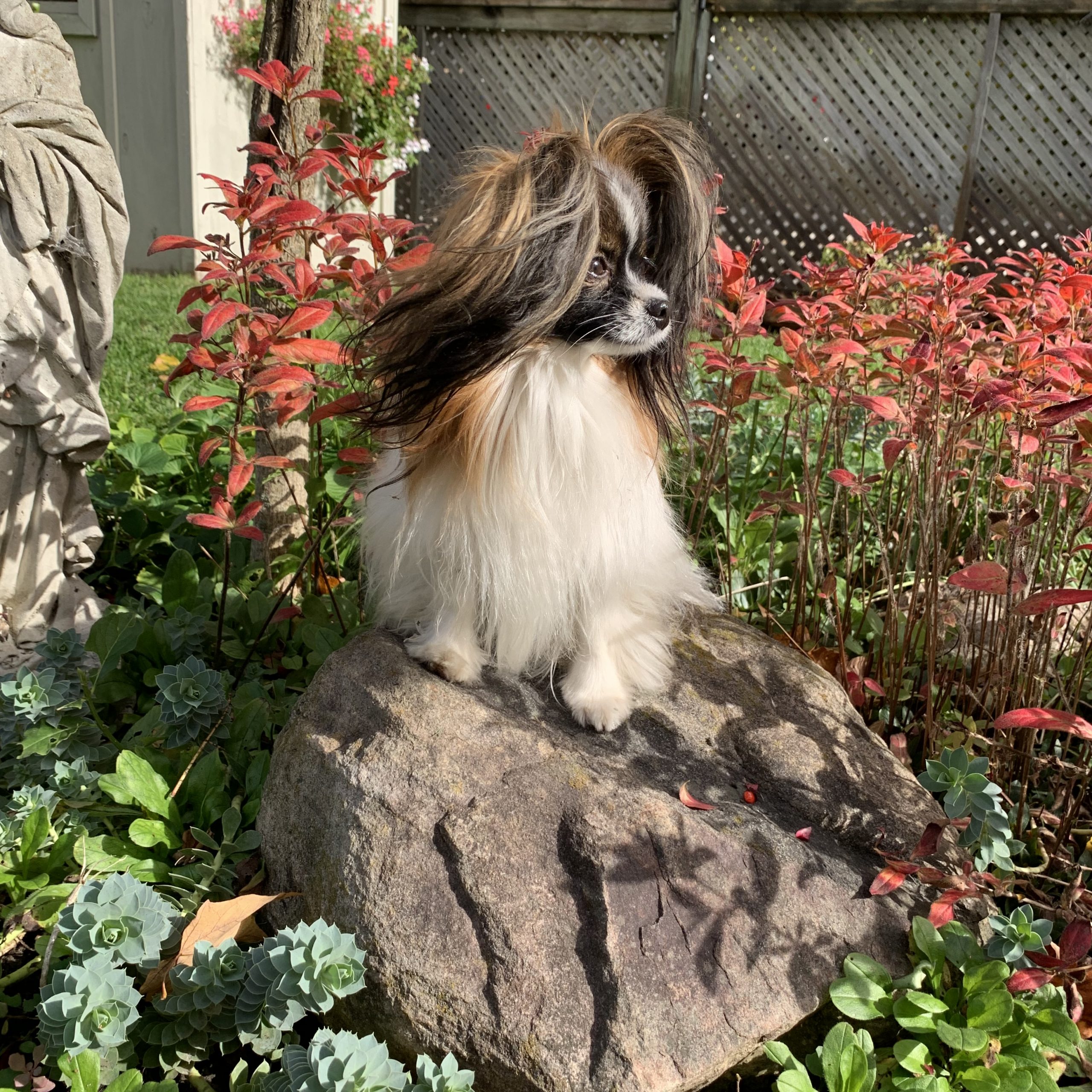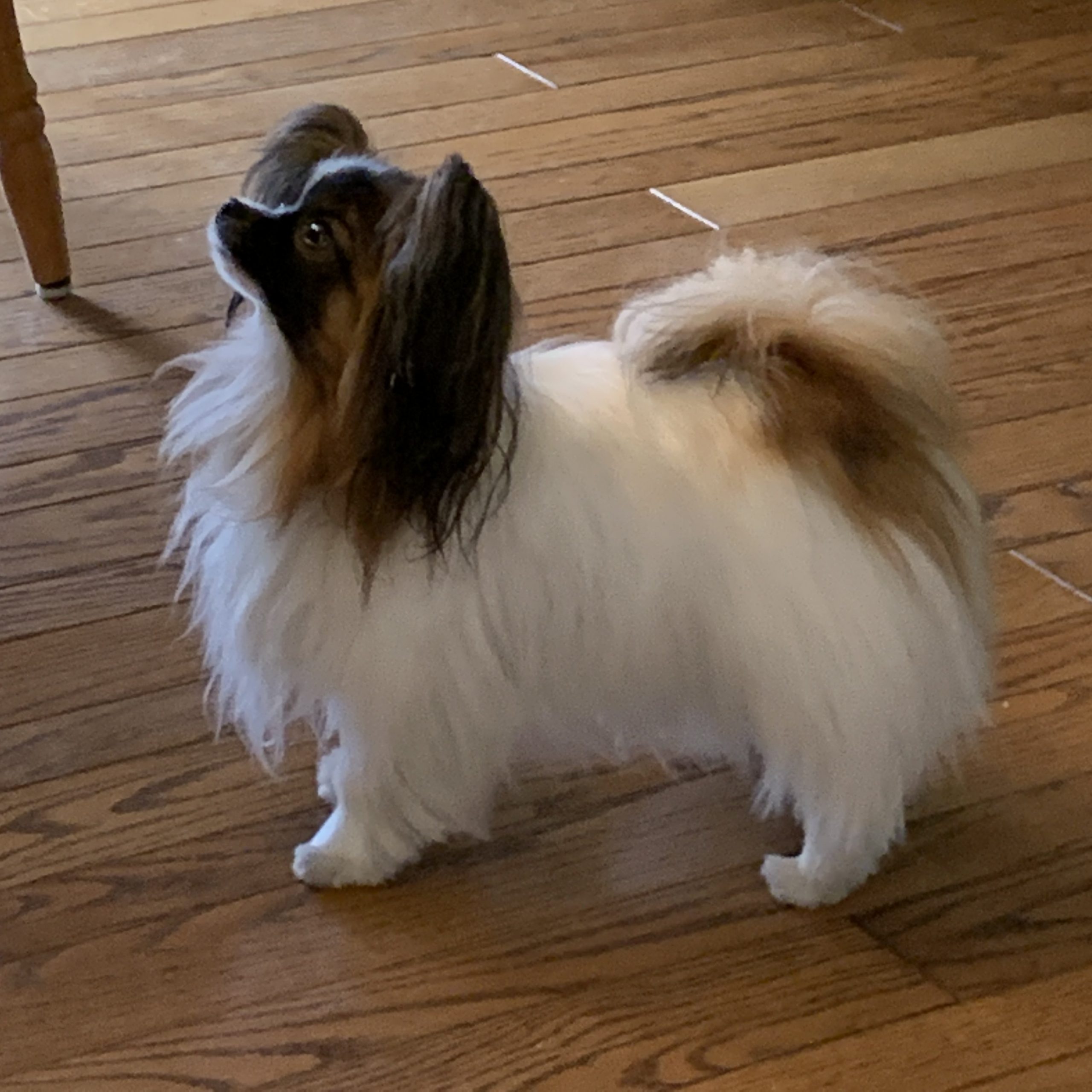 Wren is a tiny Papillon with a big personality and huge ears! The only thing that grew big is her ears!! She has bright button eyes that melt your heart. Wren has tons of energy and when she runs there’s always a smile. She is very confident for a teeny tiny dog, is incredibly smart and will do anything for hot dogs or cheese. She competes in agility and has earned her expert trick title. She loves to jump, bounce and twirl and has zero fear of heights (gulp). She enjoys going places and meeting new people and animals - will wave “hi”!