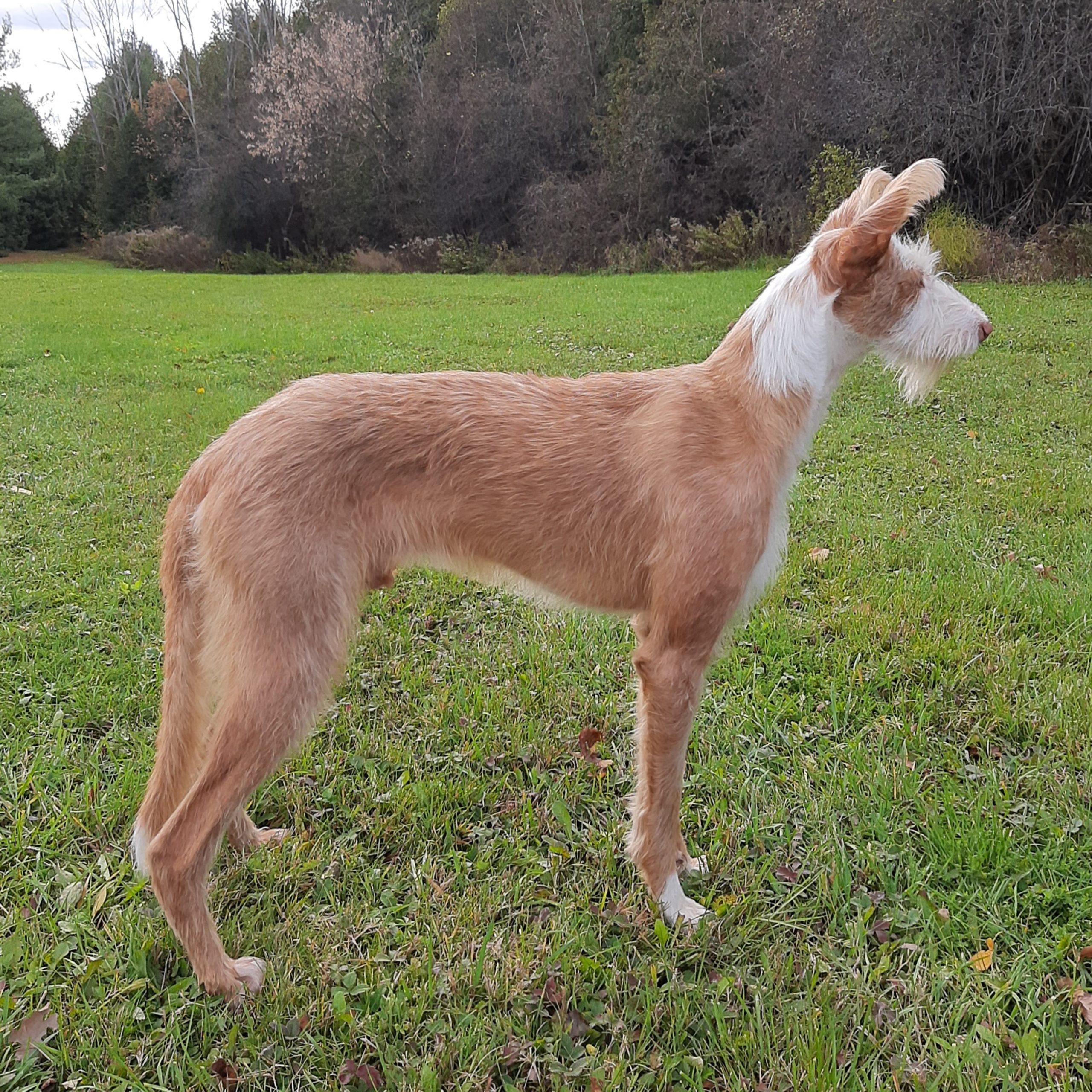He is a long coated wire Ibizan hound a rare breed ,and I am asked daily what kind of dog is that.