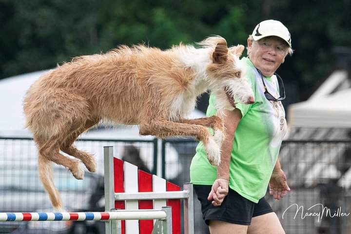 Goes to mark distance controlAgility dog high jumpSpinsBacks upTargets,touches on commandRetrieves