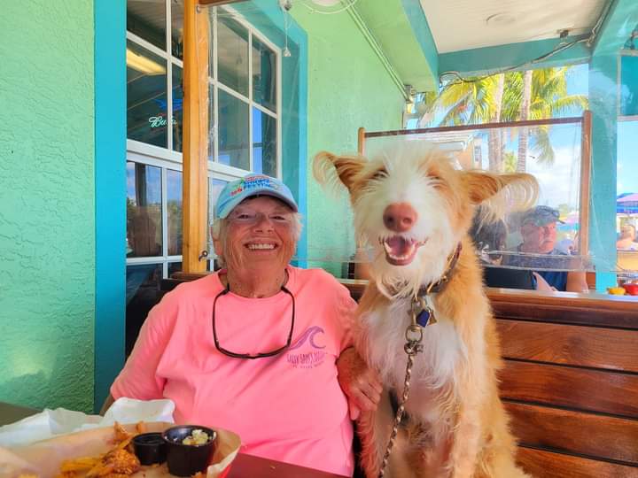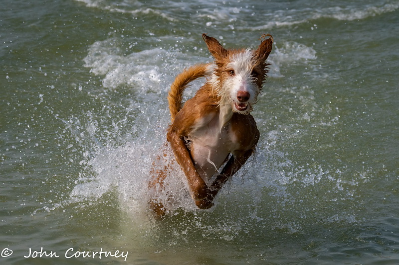 I spend part of the winter on a beach where he loves to run on the sand and waves,jumps in and out of boats and is often seen lounging in the local bars.