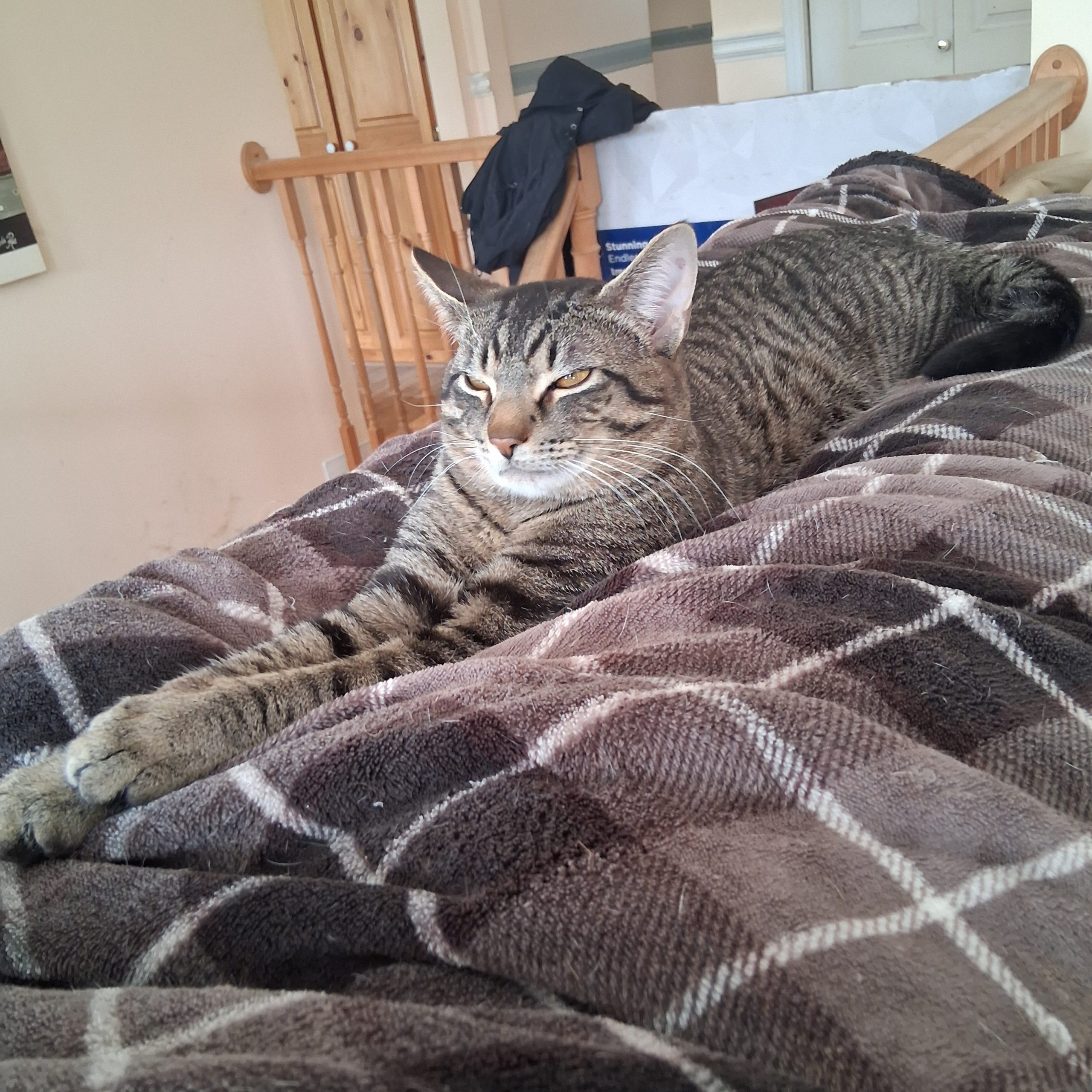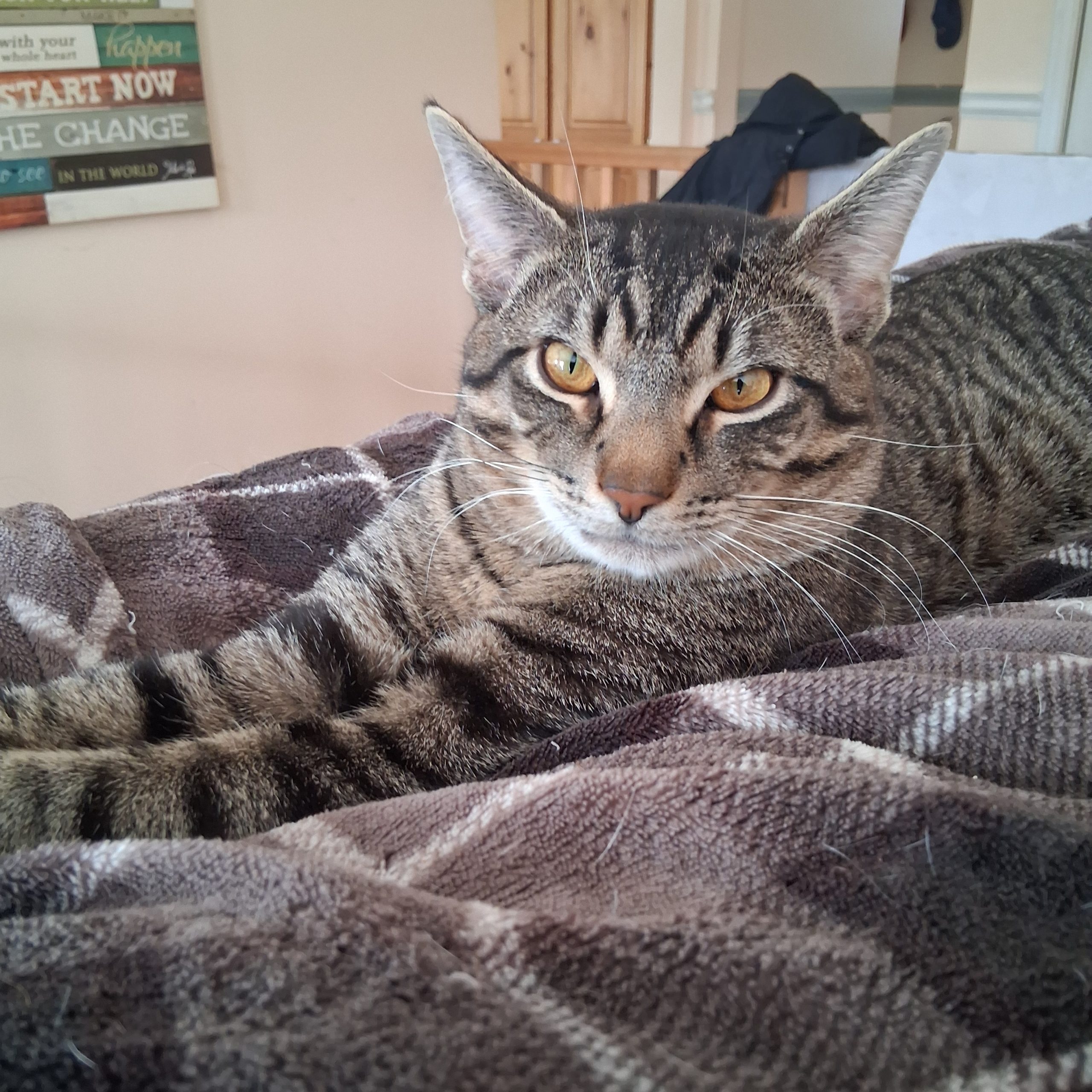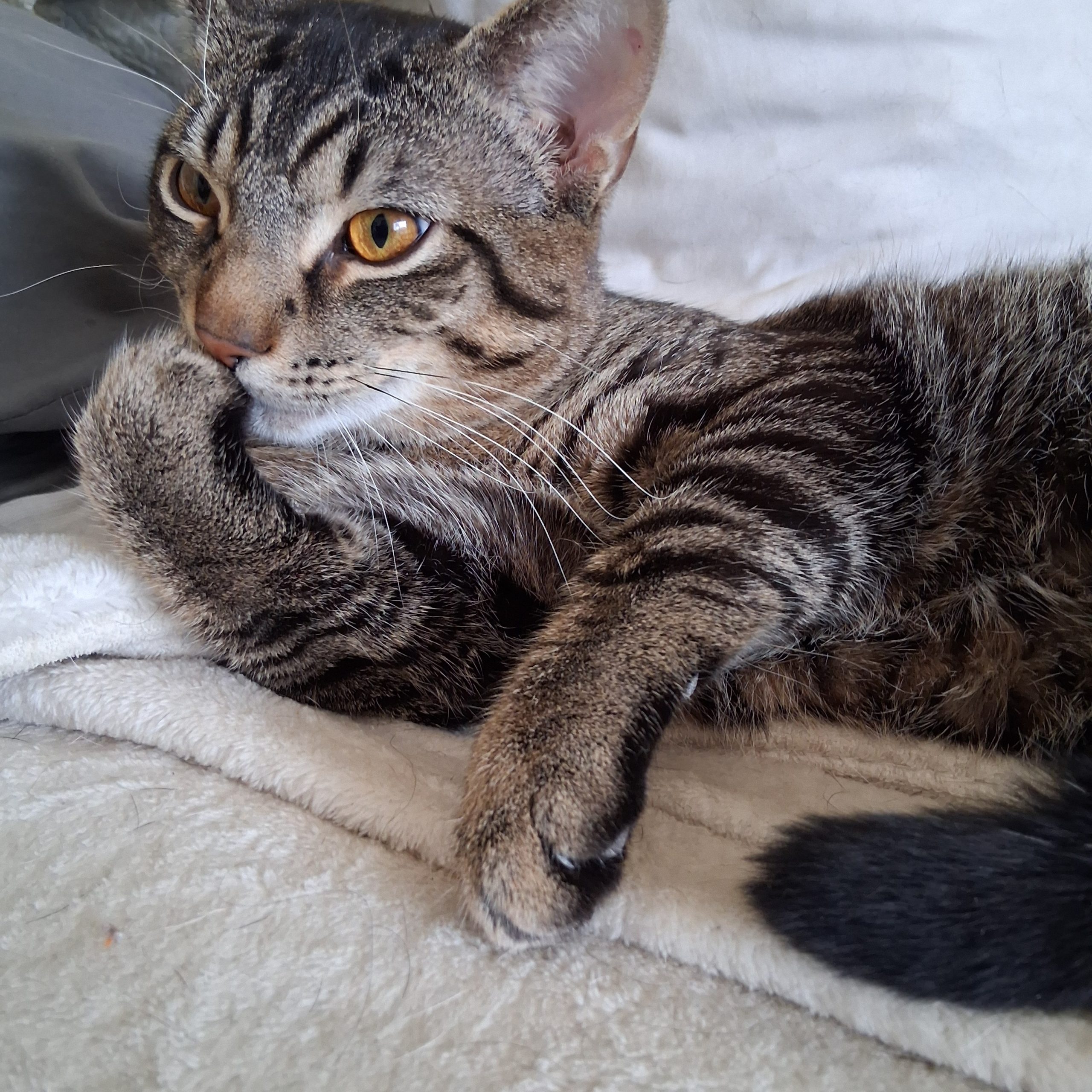 Hi, I'm Yogi! I'm pretty darn cute and I know it. I walk with a bit of a strut and love playing with my brother. I was rescued after being dumped near my owners house. I was discovered by these funny looking animals (turns out you call them dogs) in a garden. My owner took in me and my brother who was actually discovered a few days before me. I'm happy being an indoor cat. I had enough of the outdoors while waiting to be discovered. I now live in a home with two cats and three dogs. I'm comfortable around cats/dogs. I like all the stripes I have and having my paws and lower legs being all solid gray making me look like I'm wearing 4 socks. I'm hoping for a cat career in photo shoots, commercials or even movies.