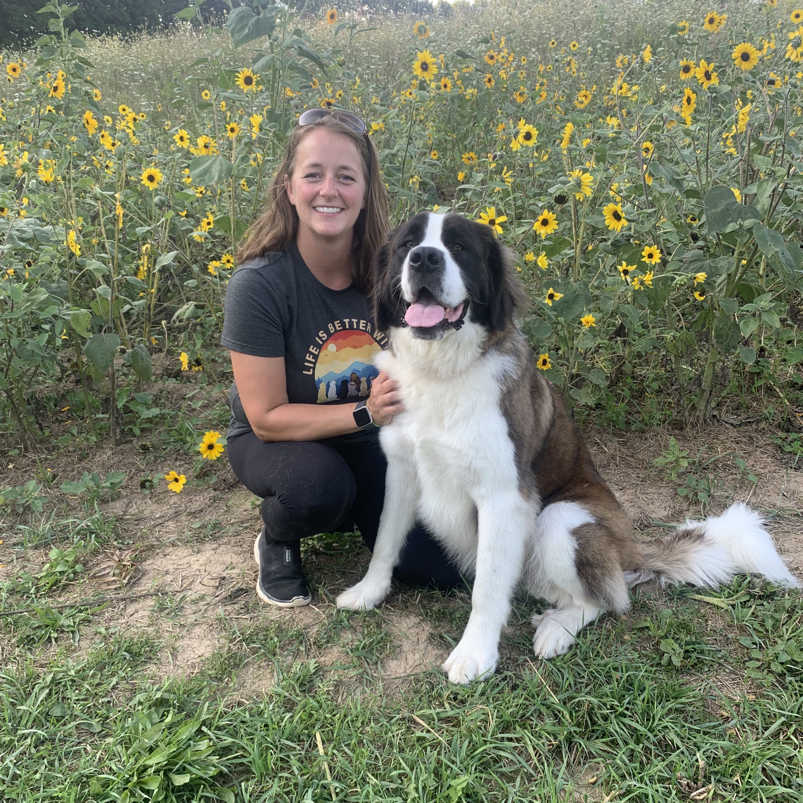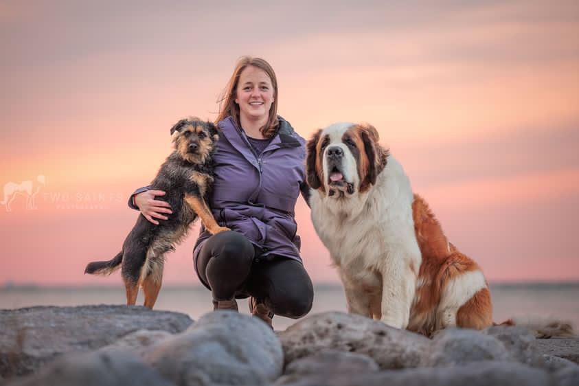 5’8’’ Caucasian female, 39 years old, 165lbs, blue eyes & light brown hair. My dogs and I like going on walks, hikes, to therapy events (they are all therapy dogs), we’ve done agility, barn hunt, obedience & scent detection. I have 3 Saint Bernard’s; Norm, Cliff & Sami and a 28lb terrier Howie.
