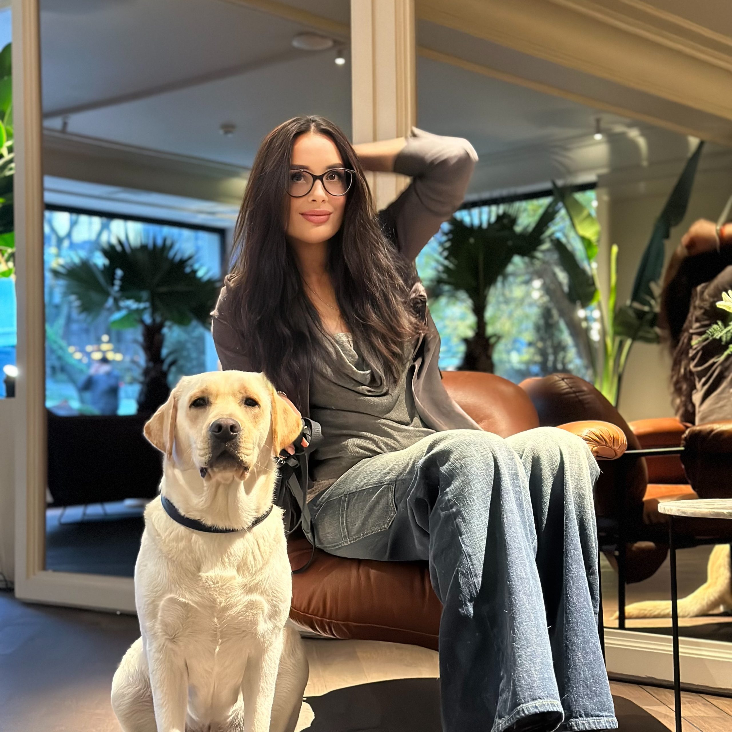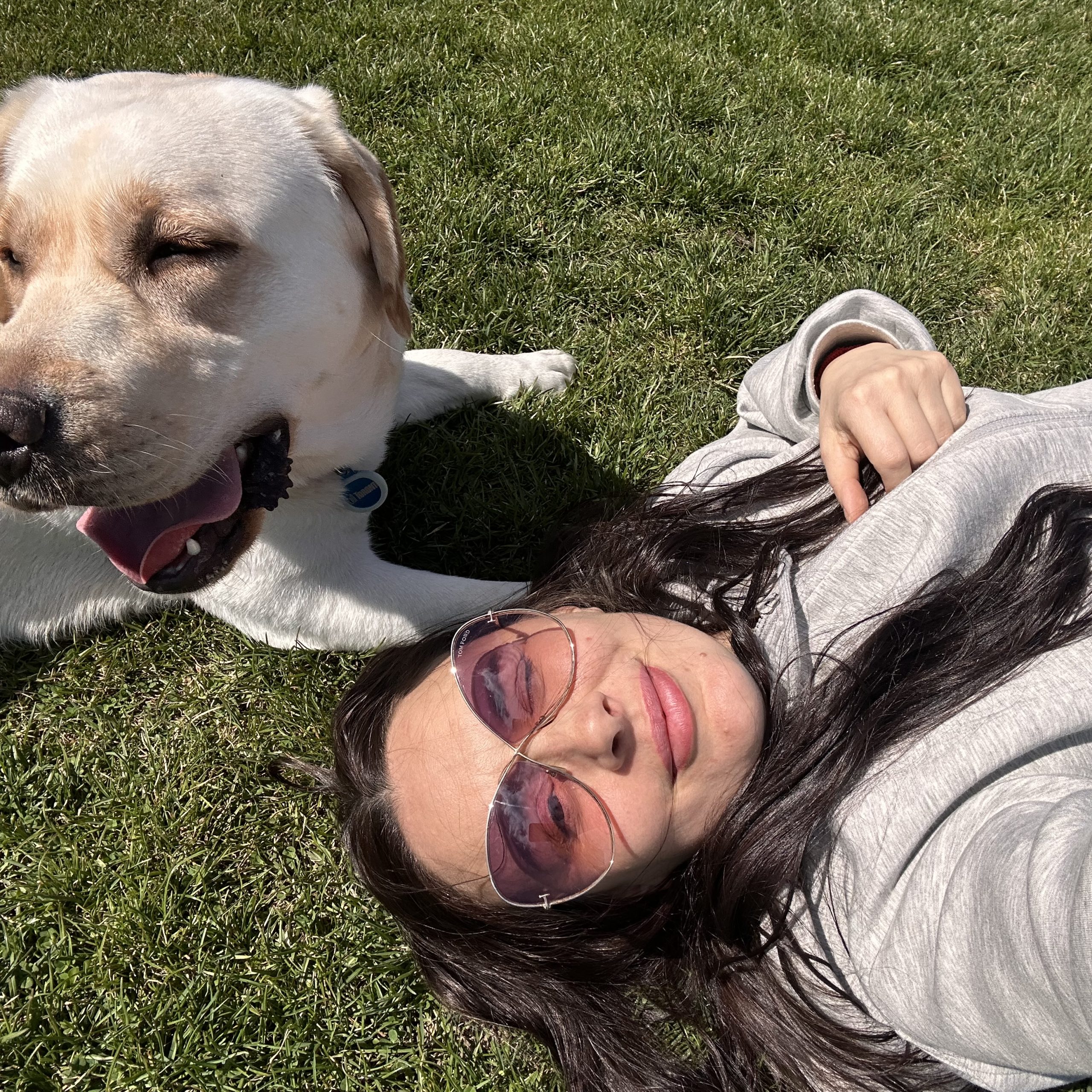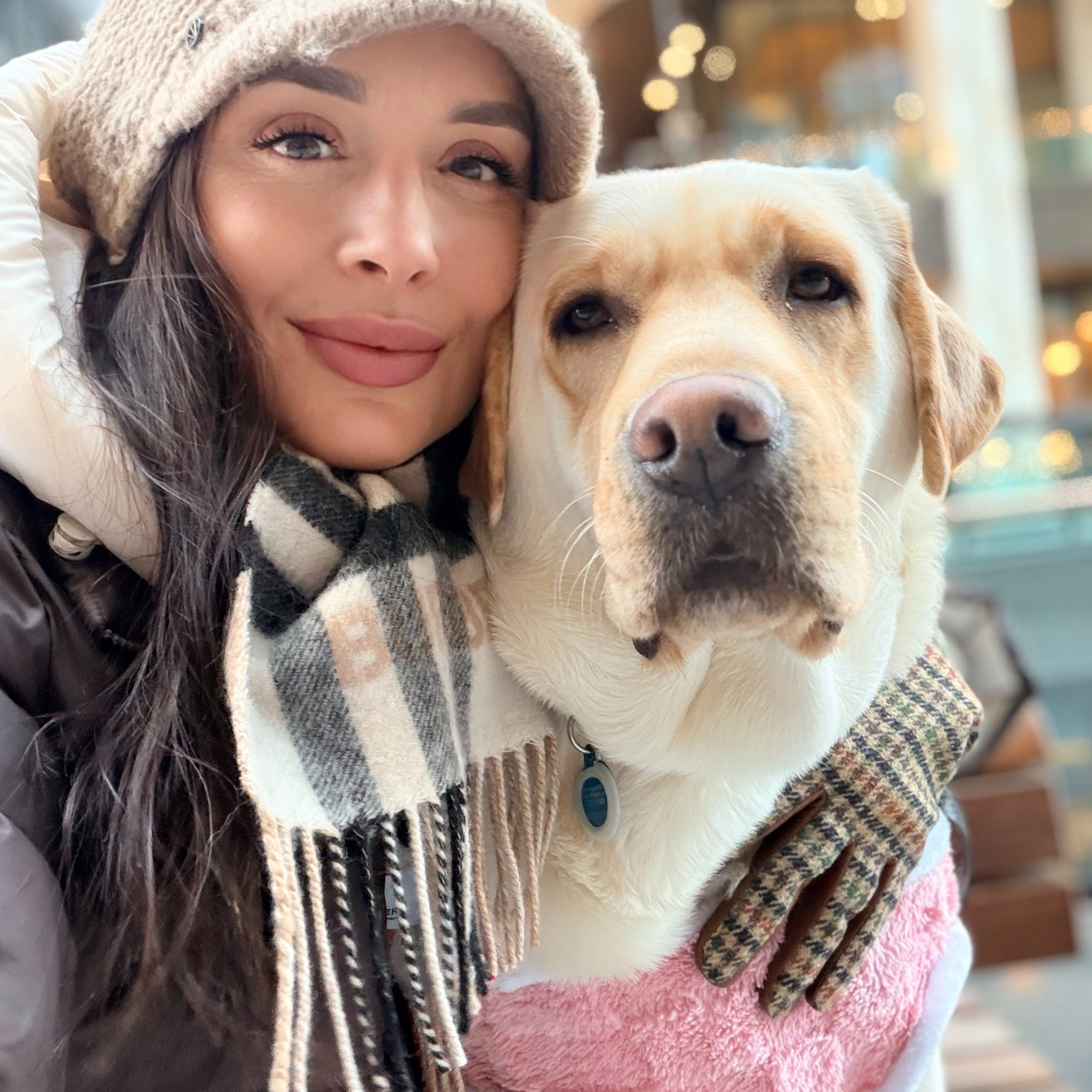 My dog Yuka is a Rocheby Labrador - Canadian Pedigree Certified, she was born from my beloved dogs and I raised her from the very first days. She is calm, well-trained, obedient, and very comfortable around people and cameras.